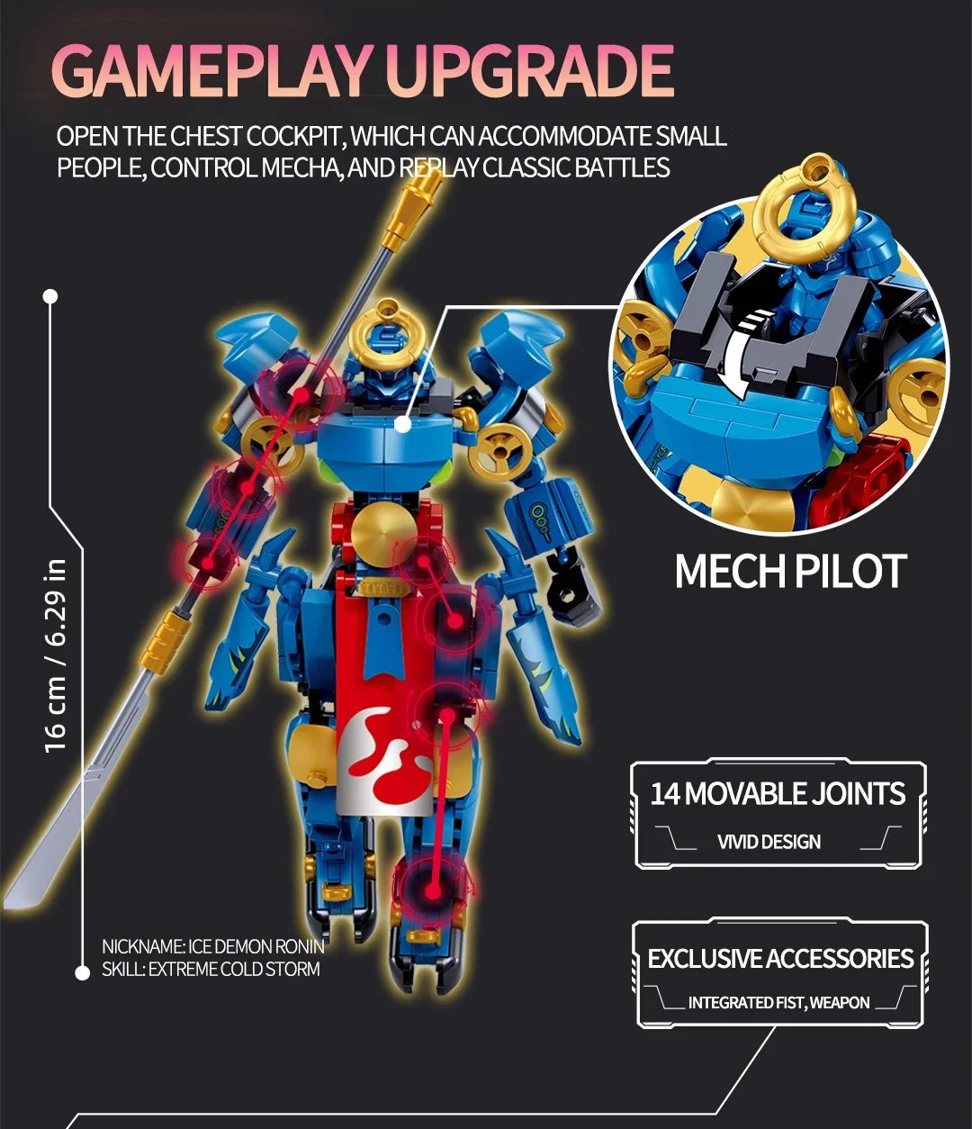✨Juego imaginativo inspirador: el tema guerrero mecha despierta la imaginación de los niños y fomenta la narración de cuentos.Los niños pueden crear batallas épicas, misiones héroicas y aventuras emocionantes, fomentando su desarrollo cognitivo y sus habilidades narrativas.