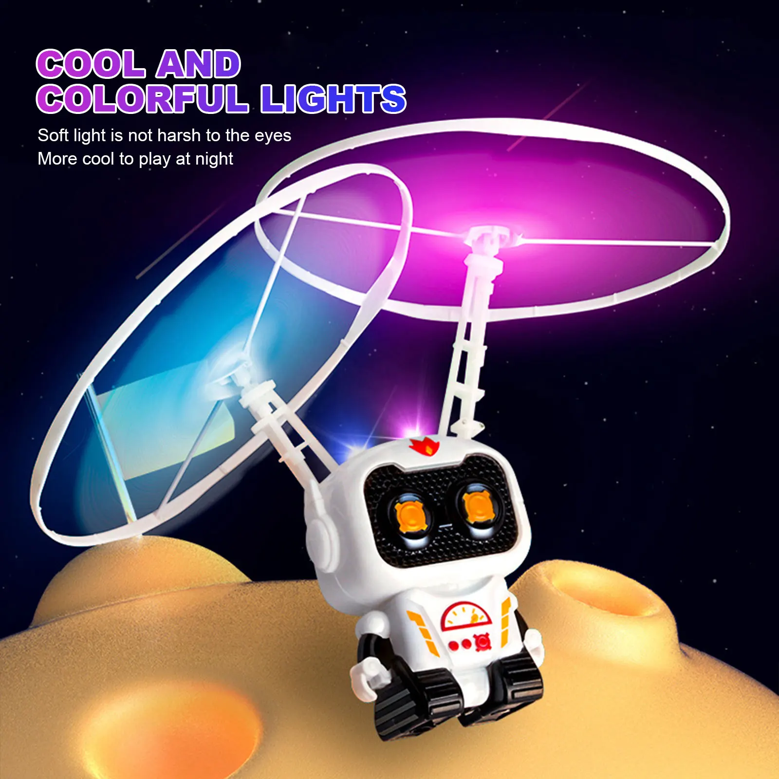 Juguete robot de astronauta volador: avión de material ABS liviano y duradero, dron controlado a mano de alta tecnología, juguetes para adolescentes con carga USB, diseño interactivo de alas duales con luces coloridas, regalo ideal al aire libre para niños