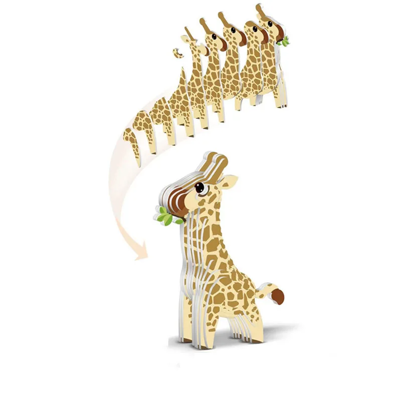 Rompecabezas 3D DIY con tema Animal, León, Tigre, conejo, modelo de juguete de papel de dibujos animados, montaje de Aprendizaje Temprano para niños, rompecabezas tridimensional