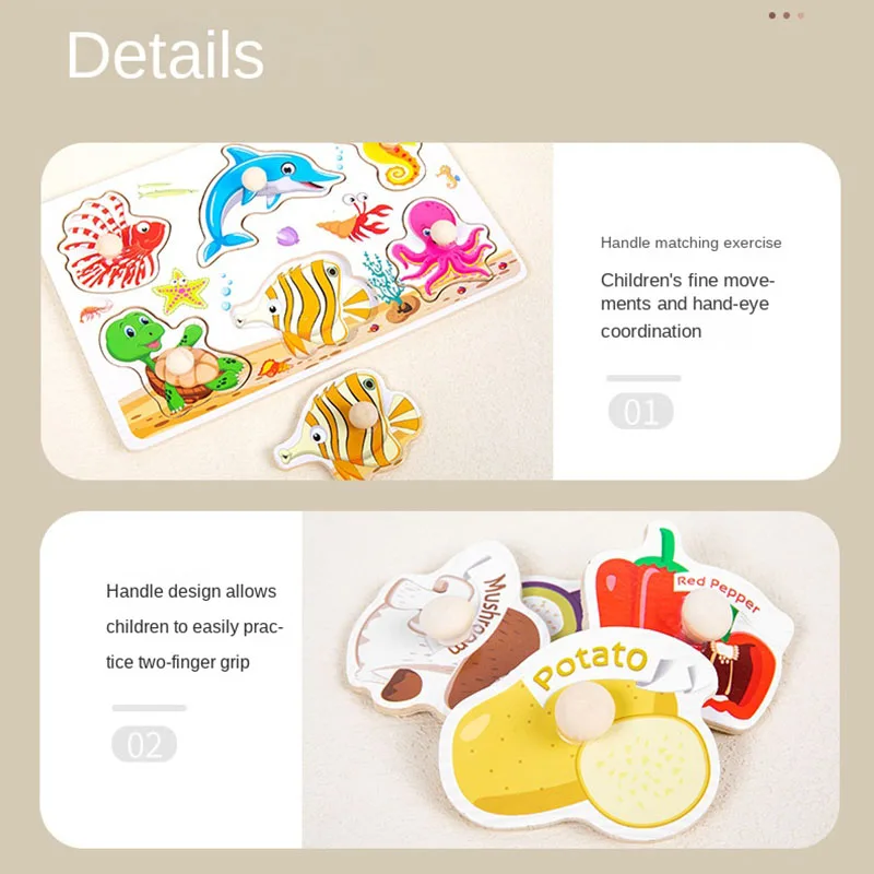 3.Pensamiento asociativo y lógico: este juego de juguetes de madera es perfecto para mejorar las habilidades motoras finas, la coordinación ojo a mano, el pensamiento asociativo, la capacidad de pensamiento lógico y también puede desarrollar la paciencia y la concentración de los niños.