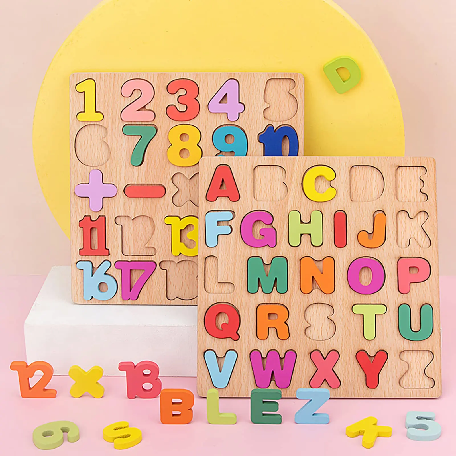 Comprar Rompecabezas 3D de madera Montessori para niños pequeños, tablero de rompecabezas con números en forma de alfabeto para niños de 1, 2 y 3 años, juguete educativo para niños y niñas