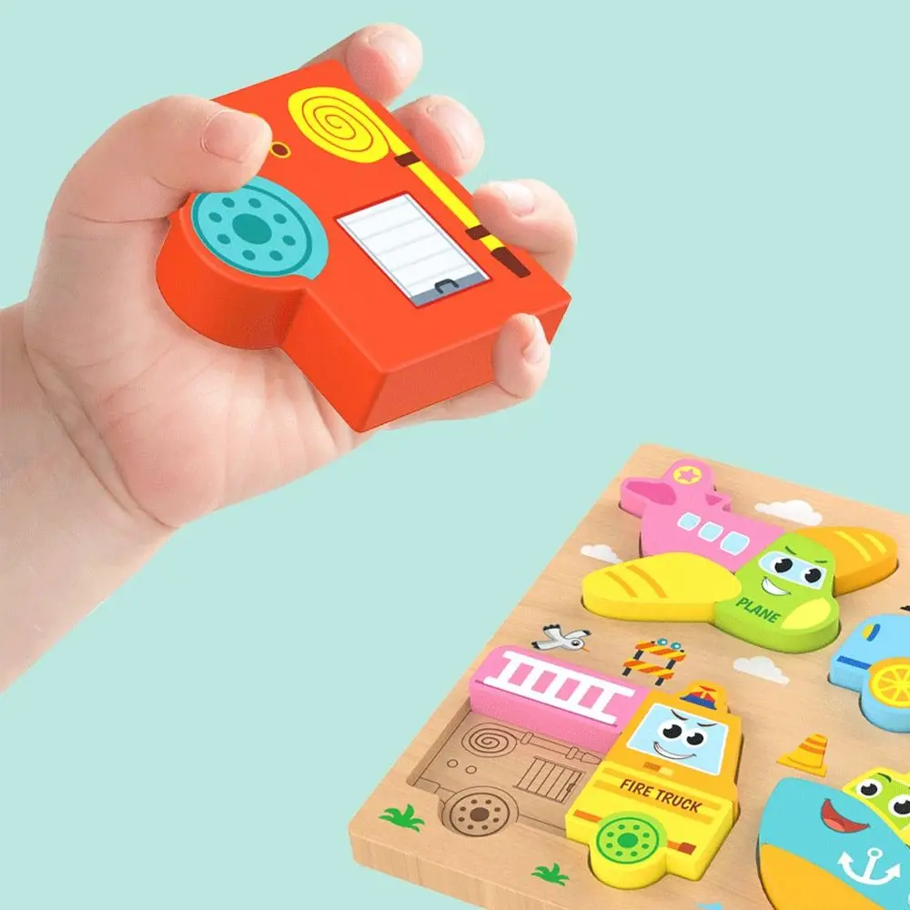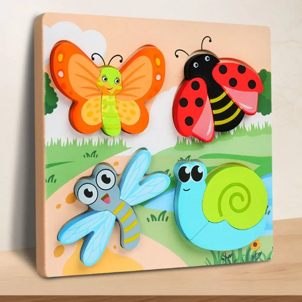 Multicolor Wooden 3D Puzzle Cartoon Animal Fruits Dinosaur English Learning Puzzle