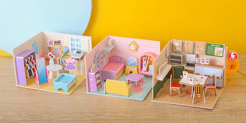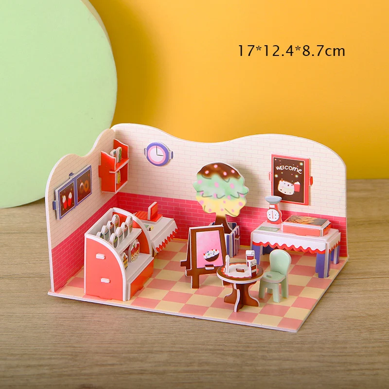Comprar Rompecabezas de cartón 3D casa habitación tiendas modelo rompecabezas juguetes niños hechos a mano DIY juguetes de ensamblaje