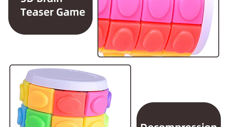 Desafía la lógica y la creatividad con este rompecabezas cilíndrico único: • 5 capas x 8 bloques coloridos: gira verticalmente o desliza horizontalmente para resolver| • Deslizadores extraíbles: personalice la dificultad reorganizando bloques| • Diseño portátil: compacto de 6,5 cm de altura para guardar bolsillos para jugar mientras viaja