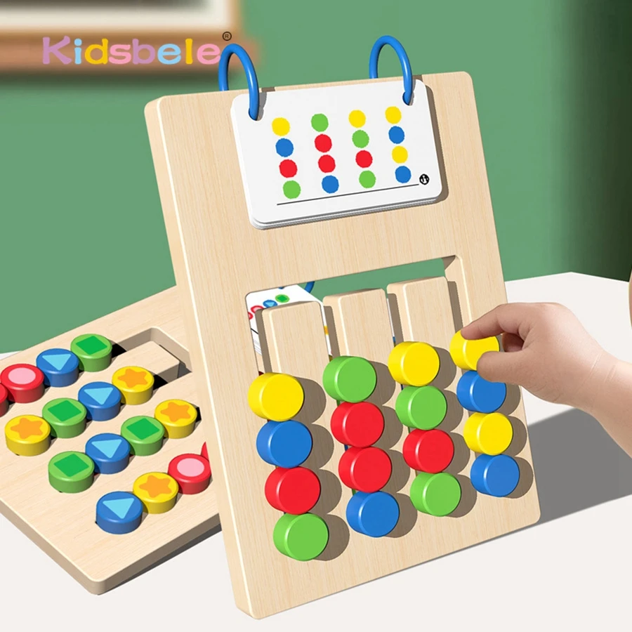 Rompecabezas de lógica de madera Montessori, juguete para niños, tabla de clasificación de colores y formas, tarjetas de patrón, juguete educativo de aprendizaje temprano