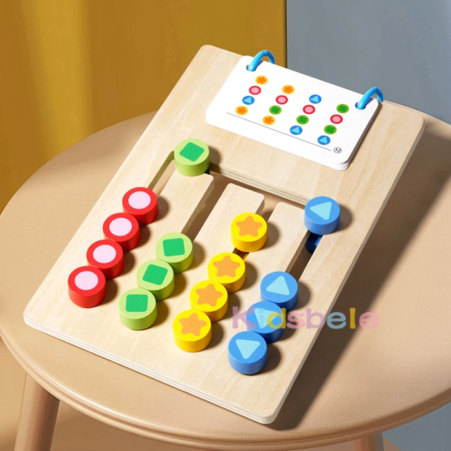 Rompecabezas de lógica de madera Montessori, juguete para niños, tabla de clasificación de colores y formas, tarjetas de patrón, juguete educativo de aprendizaje temprano