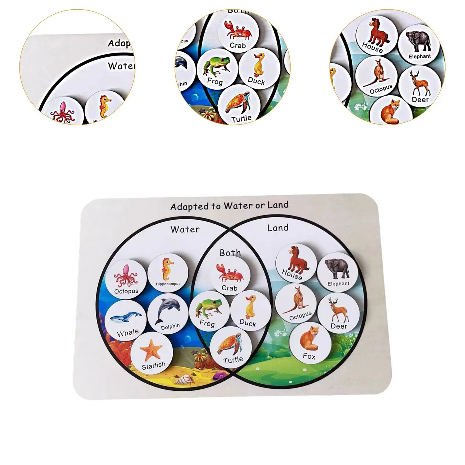 【Experiencia de aprendizaje interactiva】: este atractivo rompecabezas de madera presenta un diseño único que incluye 14 discos de animales pequeños.Los niños pueden combinar cada animal con su hábitat correspondiente, fomentando su imaginación y mejorando sus habilidades cognitivas.
