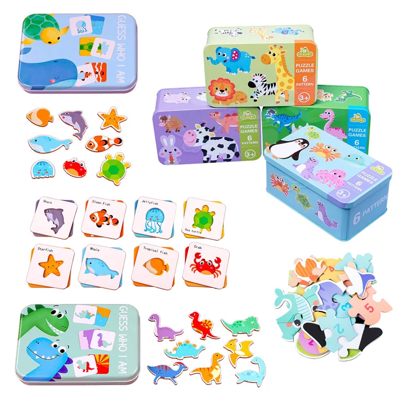 3.Los juegos de rompecabezas tienen una bonita caja de hierro, que también son fáciles de llevar.La apariencia es brillante y hermosa, lo que estimula la curiosidad del bebé.