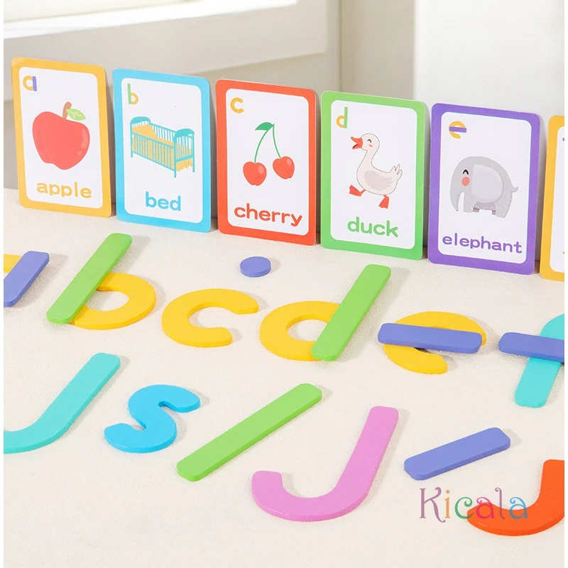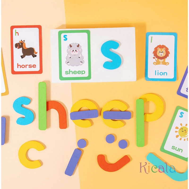 Rompecabezas de madera, animales de dibujos animados, ver hechizo, juguetes de aprendizaje, alfabeto inglés, palabras visibles y juegos de letras a juego, regalo para niños, juguetes