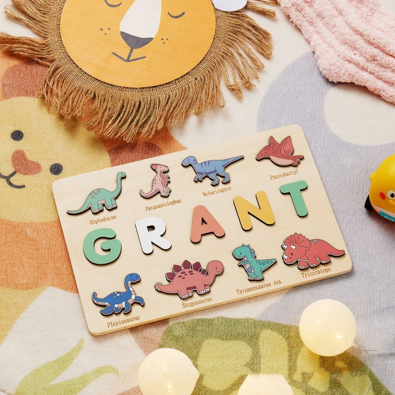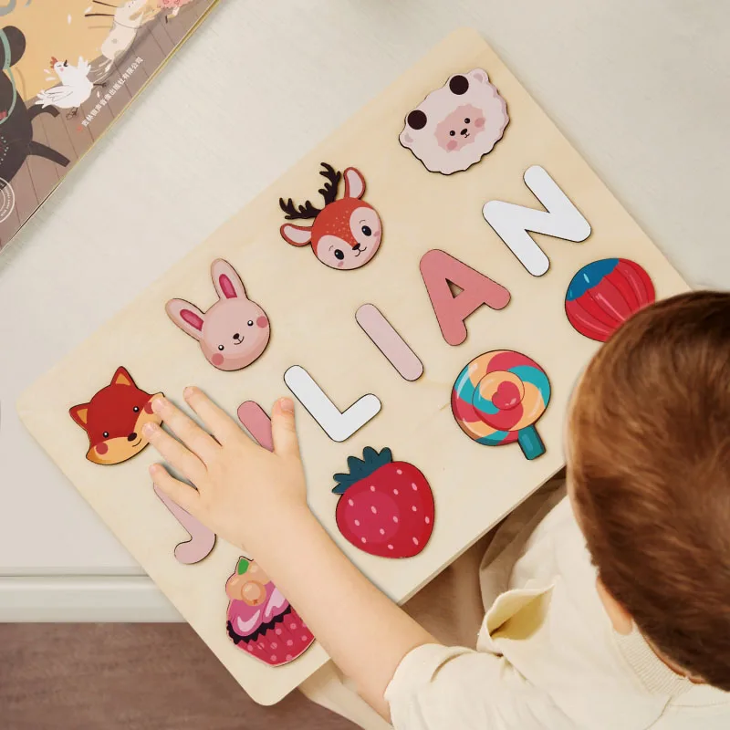 Comprar Rompecabezas de madera personalizado Montessori, tablero de rompecabezas personalizado con nombre del bebé, juguetes educativos a juego para niños pequeños, cumpleaños personalizado