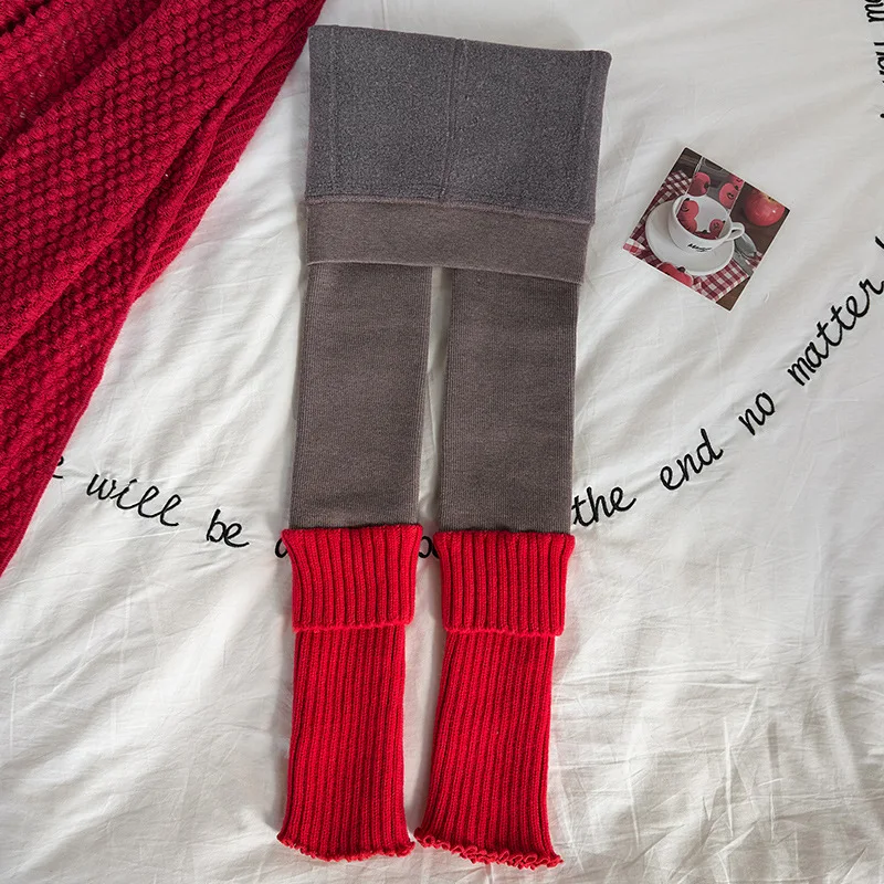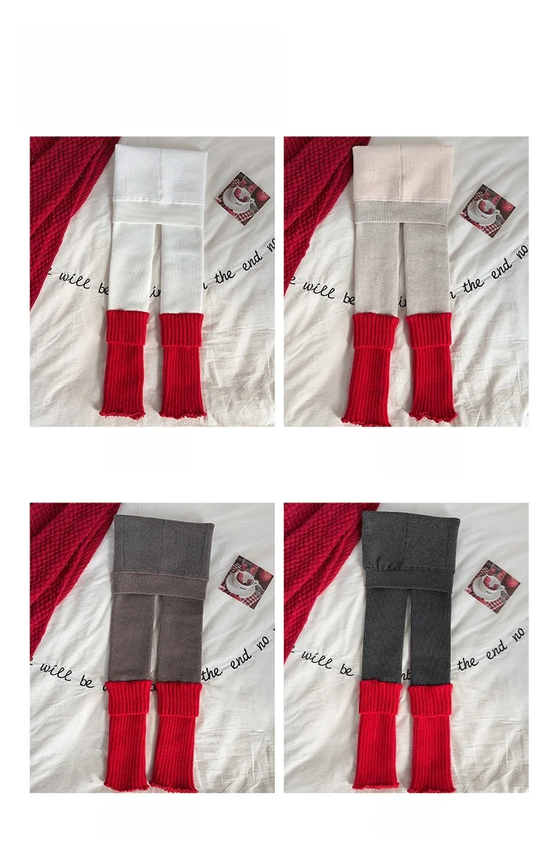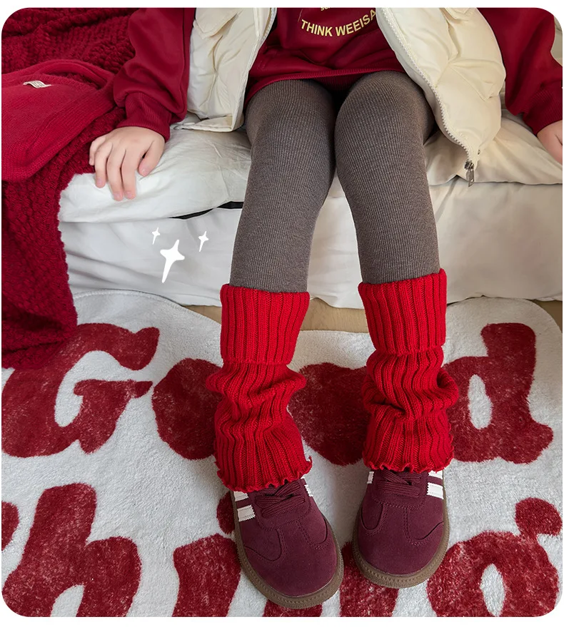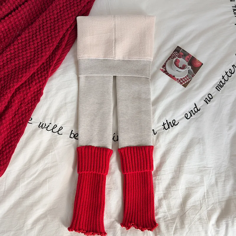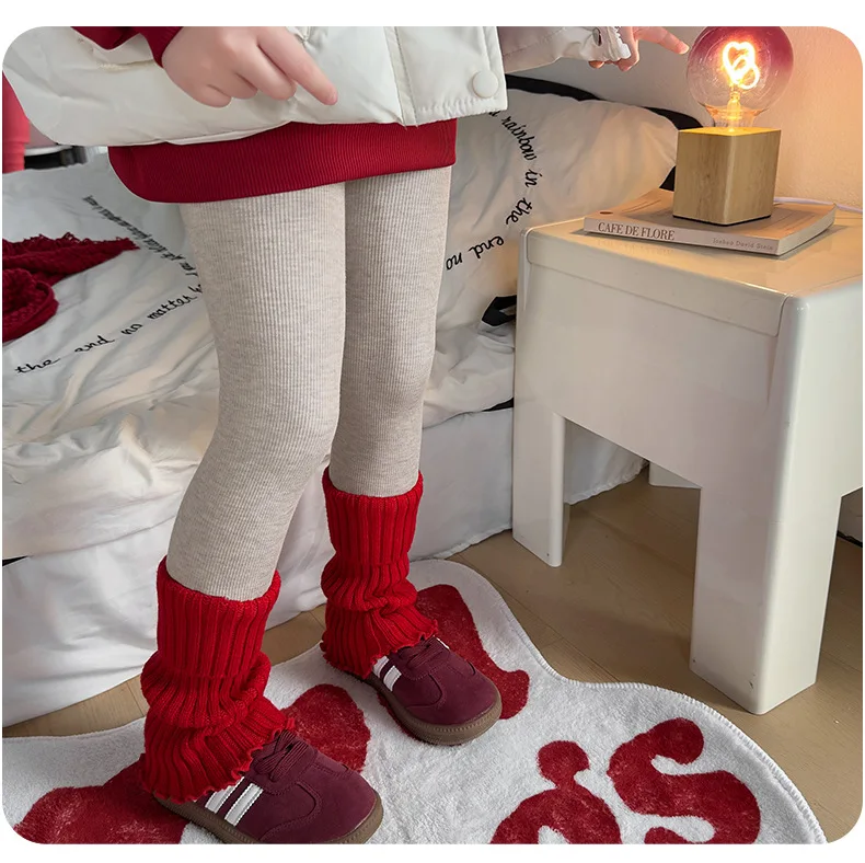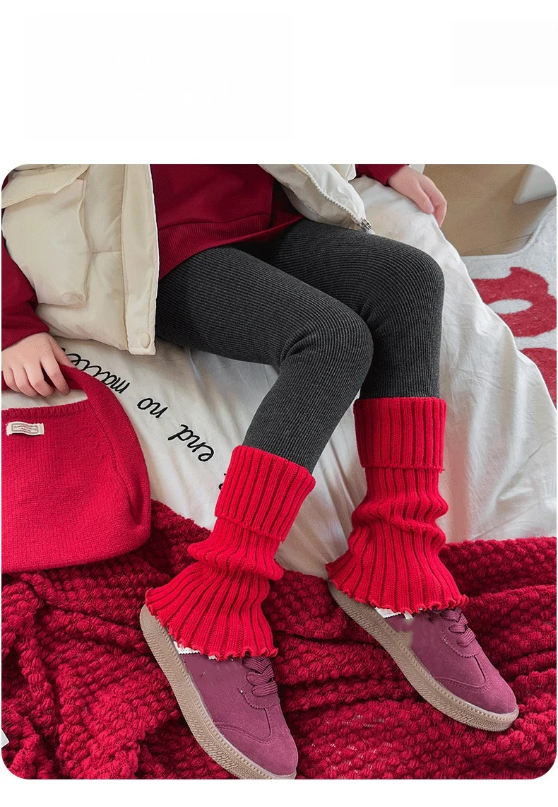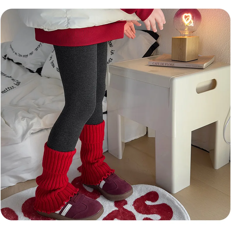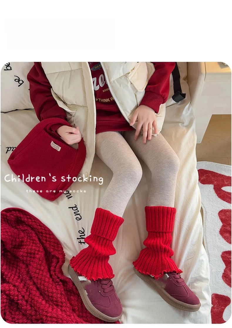 Comprar Ropa de Año Nuevo para niñas de 2025, mallas con forro polar de Navidad de invierno, calcetines rojos, puños empalmados, cálidos y versátiles para niñas de 3 a 12 años