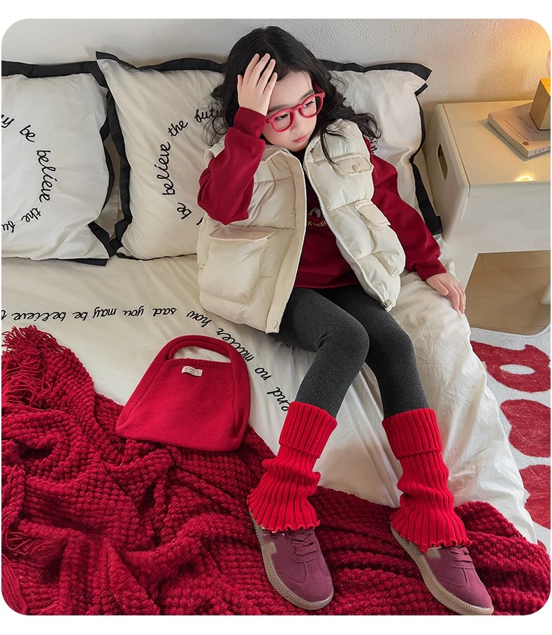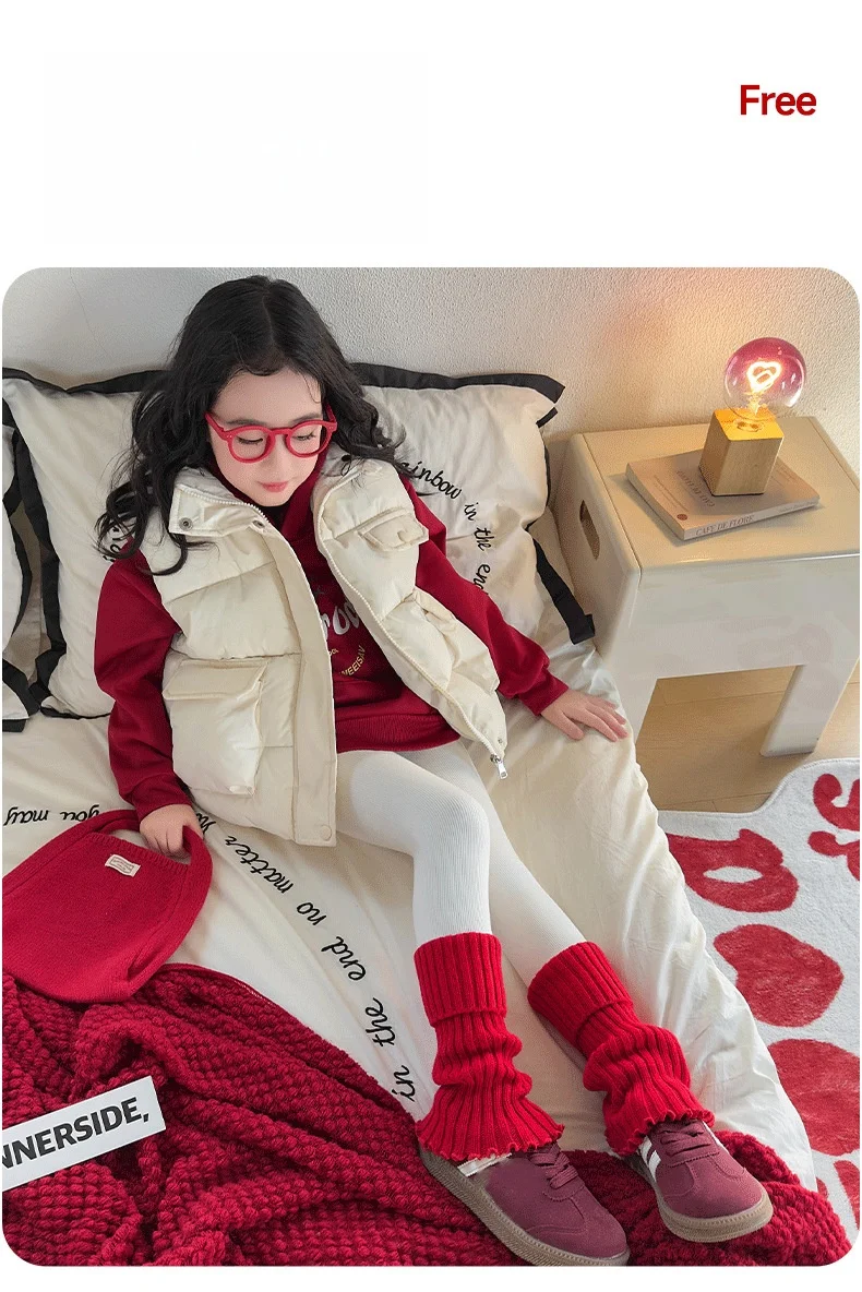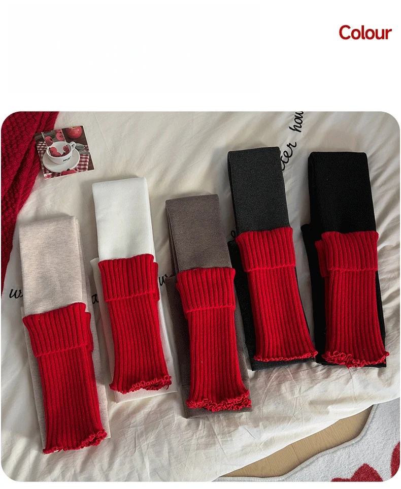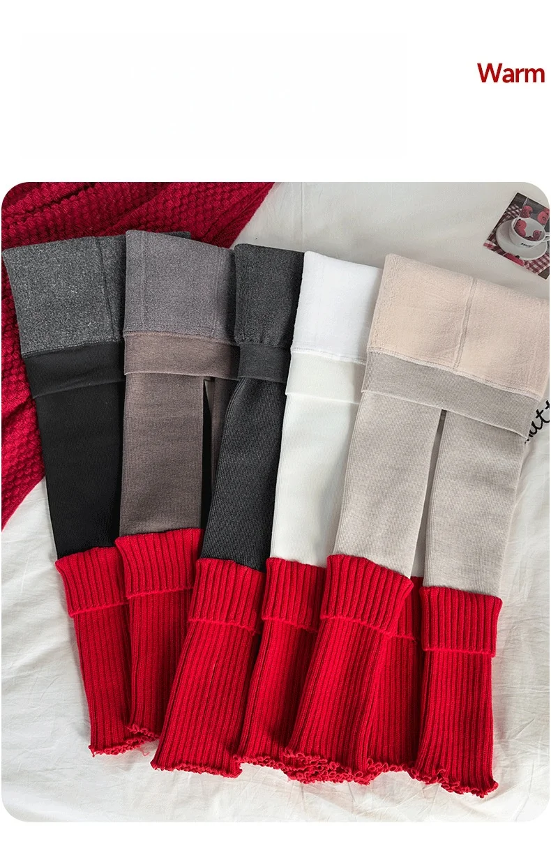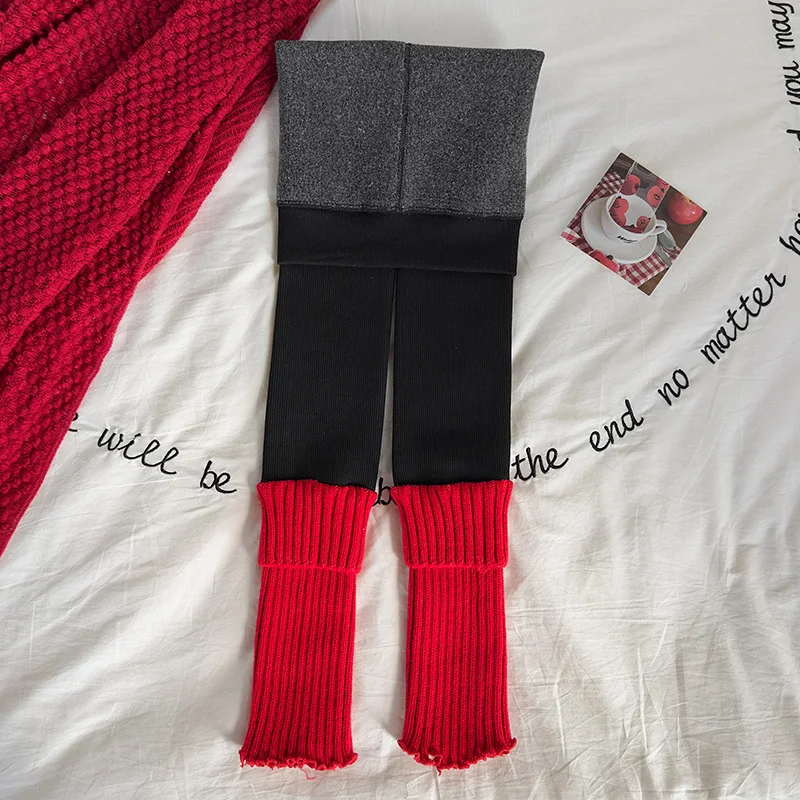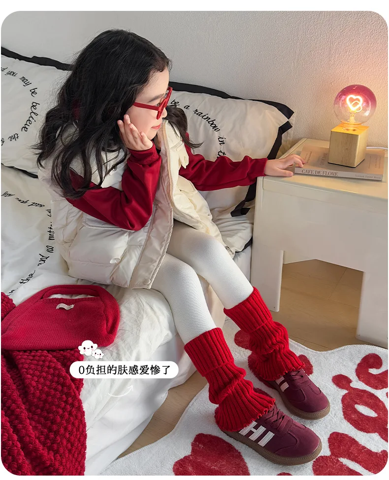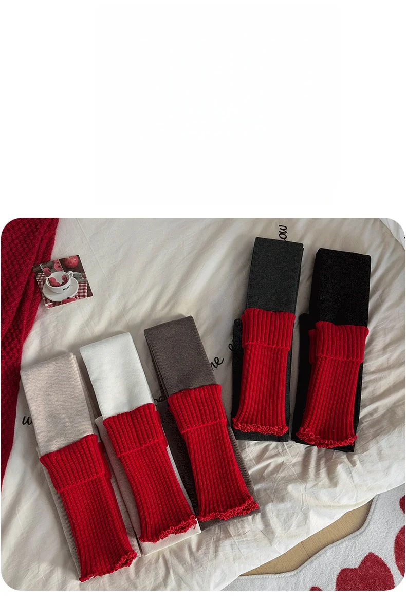 Comprar Ropa de Año Nuevo para niñas de 2025, mallas con forro polar de Navidad de invierno, calcetines rojos, puños empalmados, cálidos y versátiles para niñas de 3 a 12 años