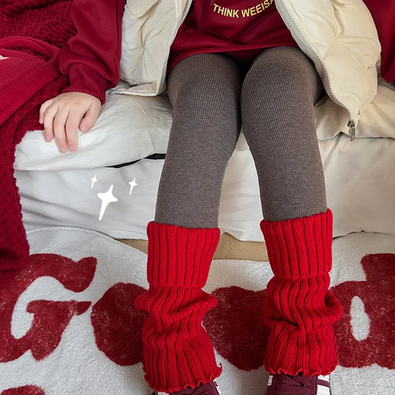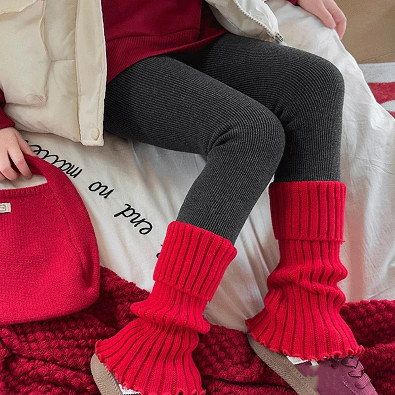 Comprar Ropa de Año Nuevo para niñas de 2025, mallas con forro polar de Navidad de invierno, calcetines rojos, puños empalmados, cálidos y versátiles para niñas de 3 a 12 años