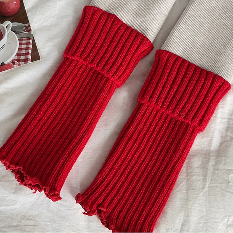 Cuenta con calcetines de punto rojo, como puños empalmados con mallas base, creando una apariencia moderna y llamativa.