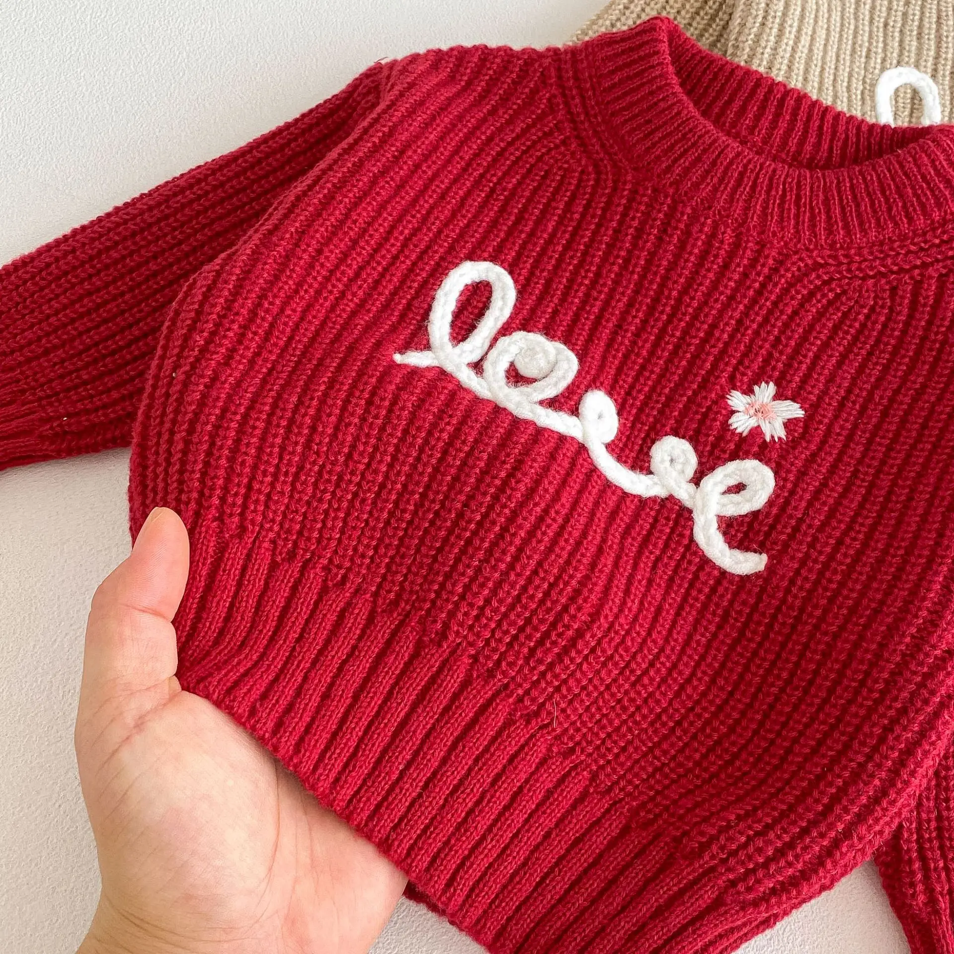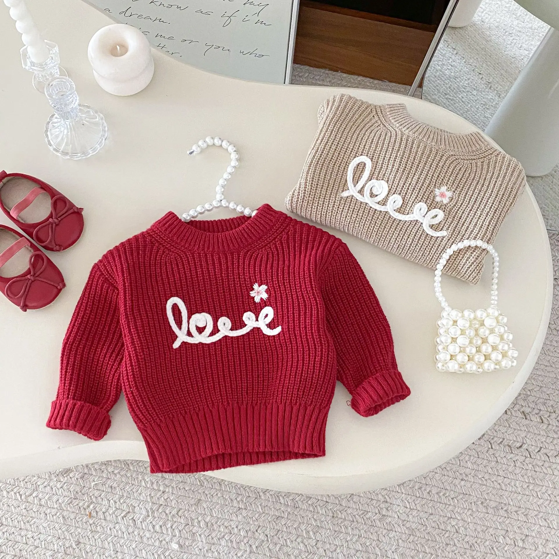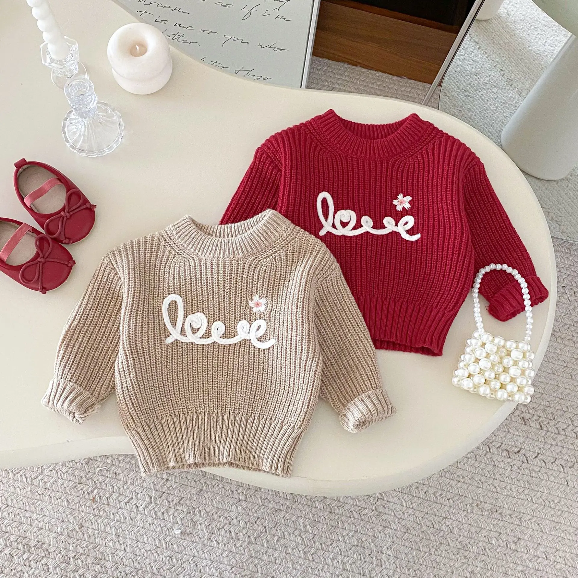 2. Encantador bordado de amor: decorado con lindos bordados de amor, que añaden un toque encantador al suéter.