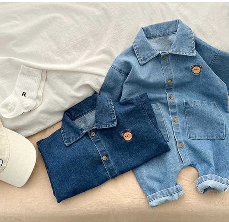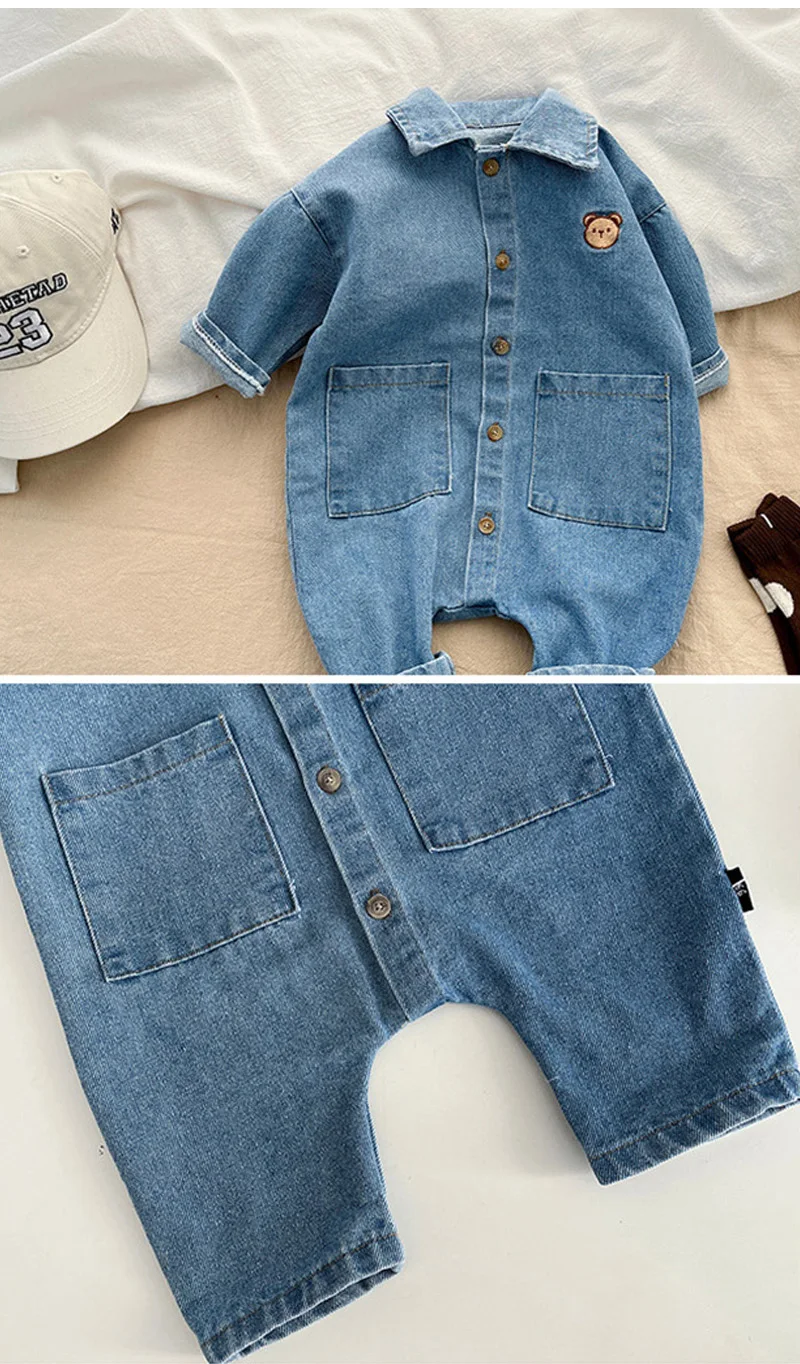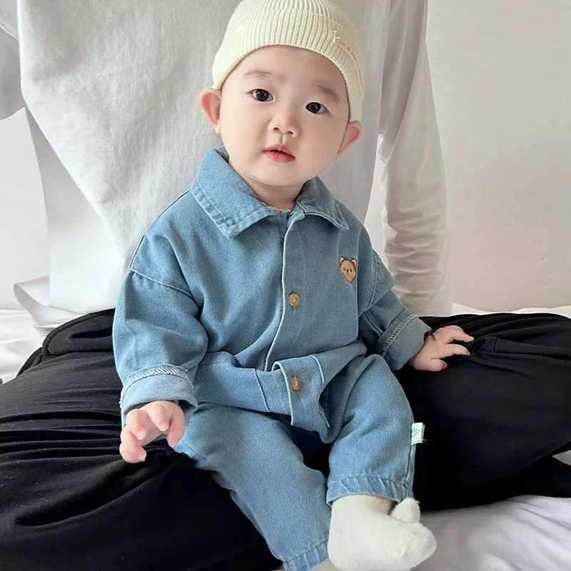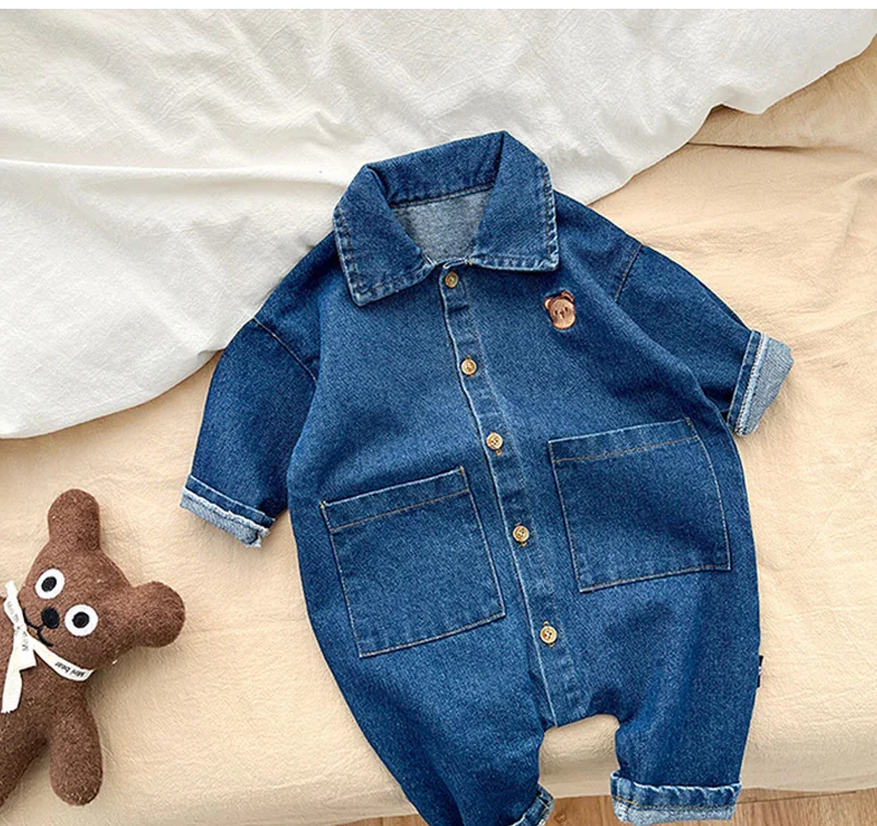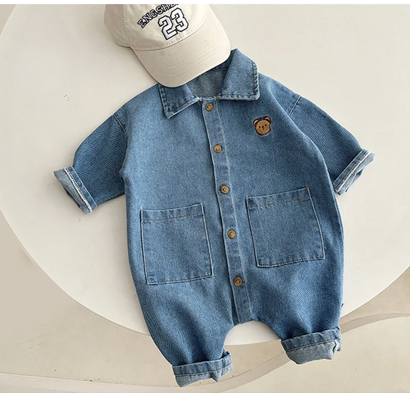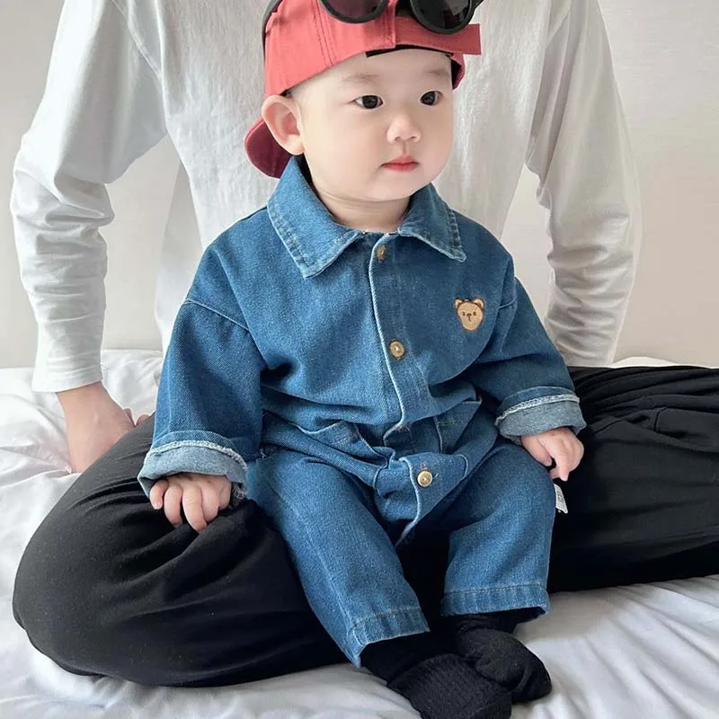 Mono de mezclilla para bebé, mono para niños y niñas, primavera y otoño