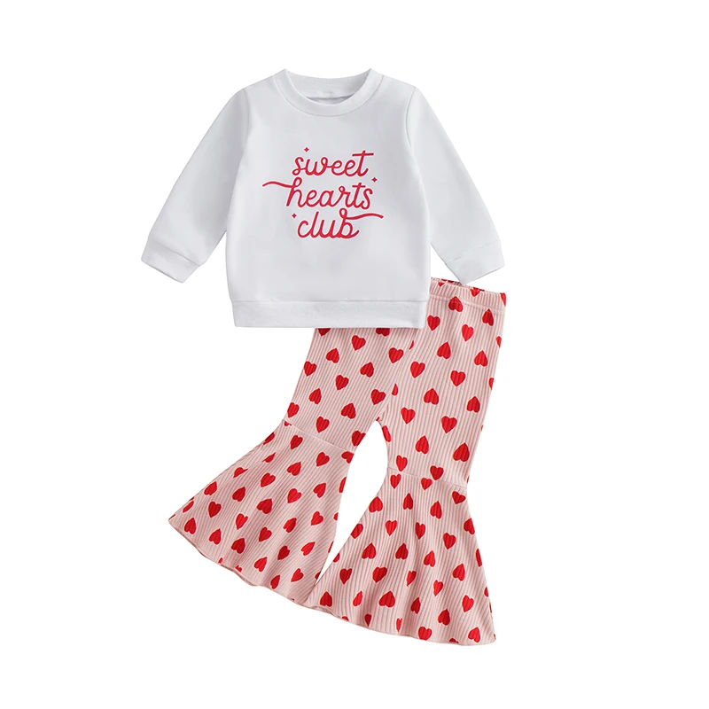 Ropa de bebé niños niñas pantalones traje manga larga cuello redondo letras estampadas Tops Casual Bell-Bottoms pantalones conjunto de ropa para niños