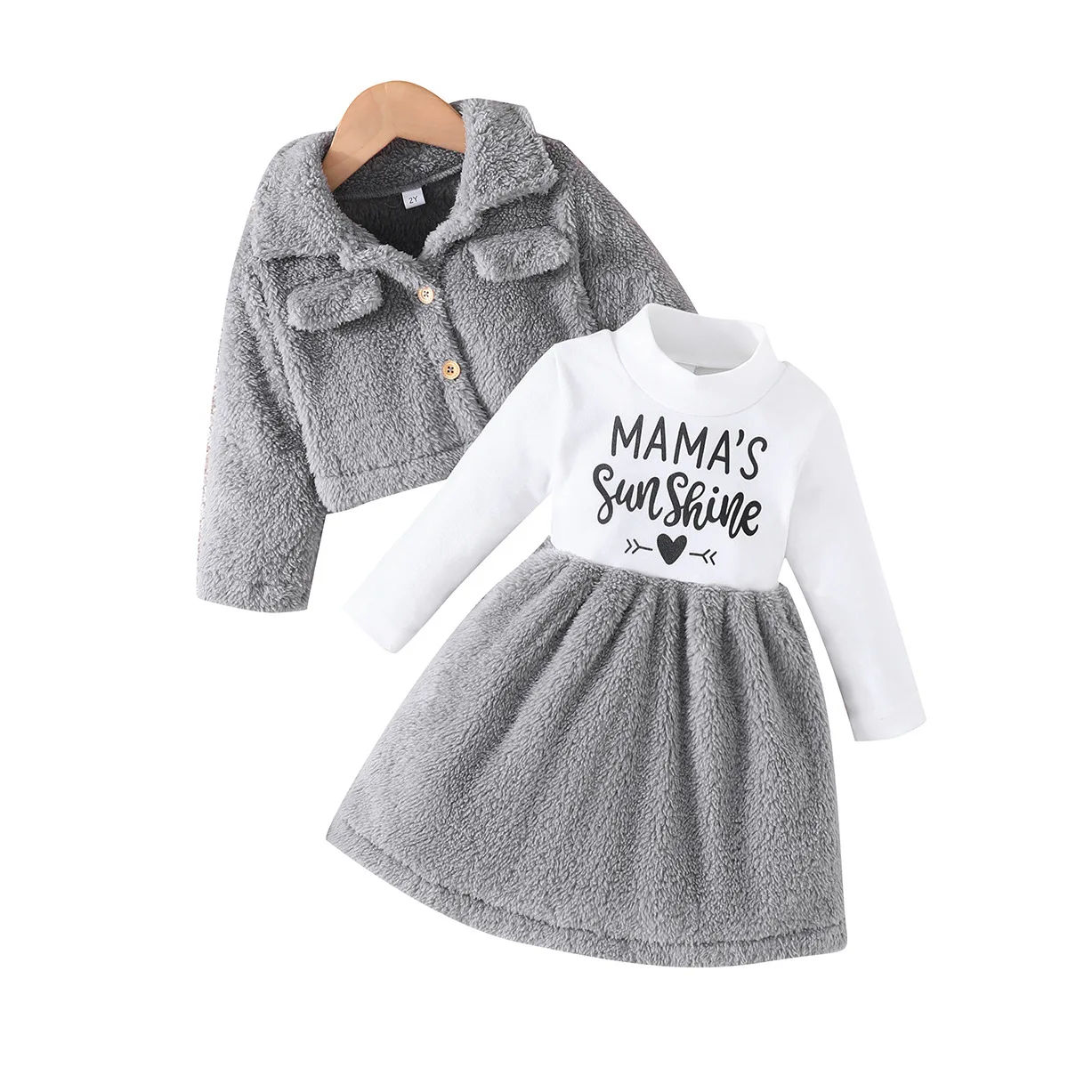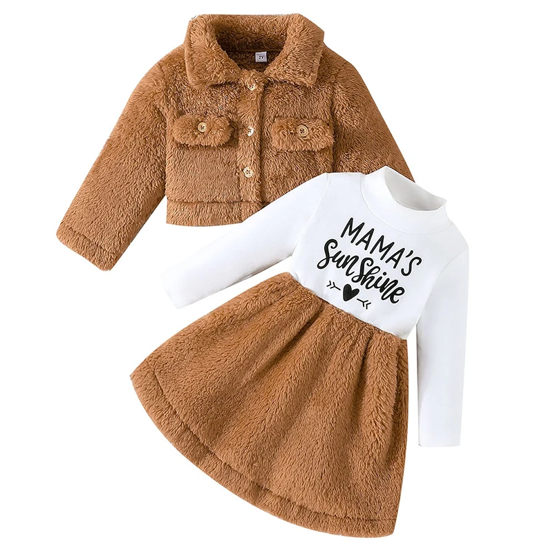 Comprar Ropa de Boutique para niños, abrigo de solapa de moda coreana, Vestido de manga larga con letras, conjuntos para niños, BC656, Otoño e Invierno