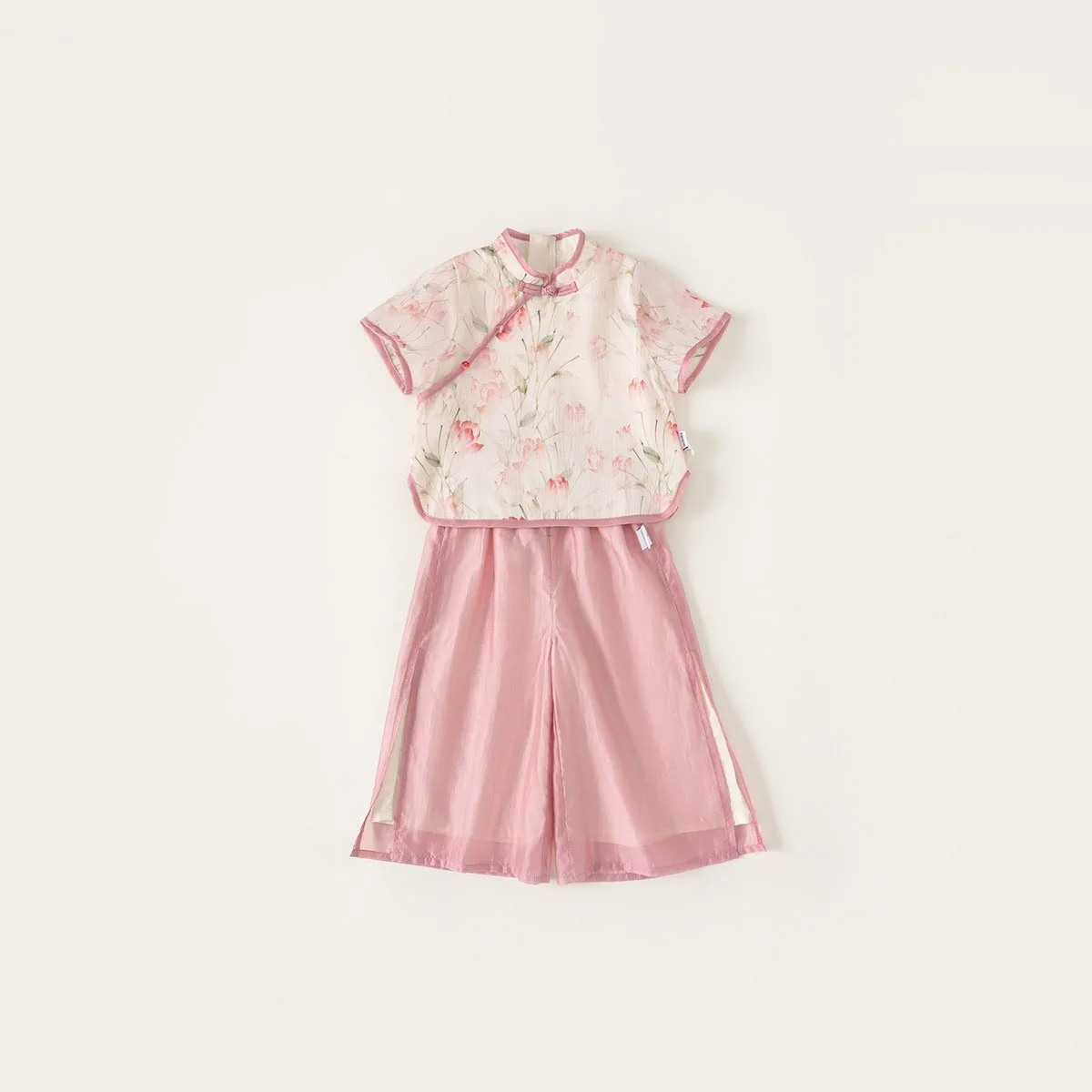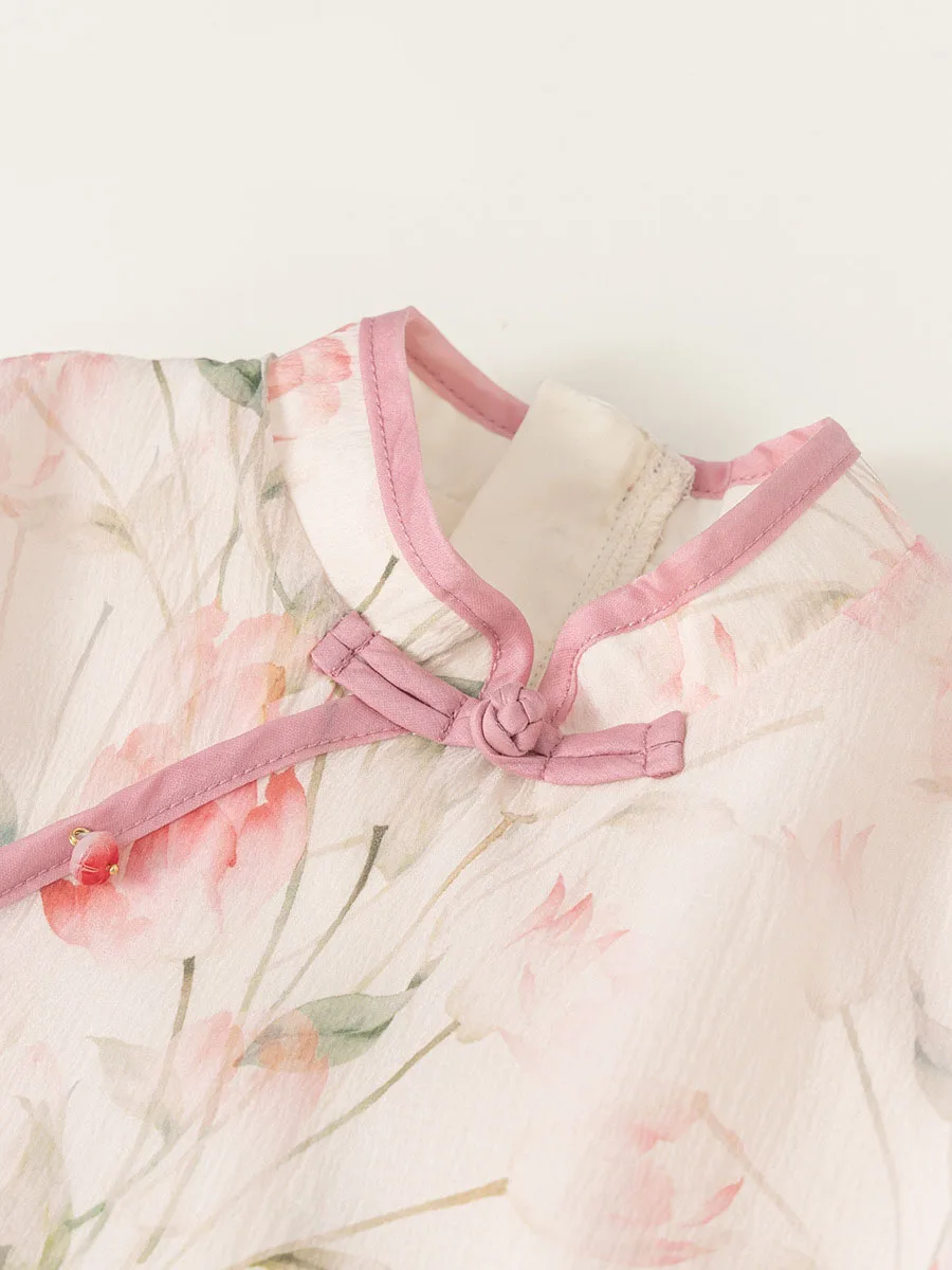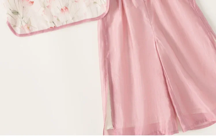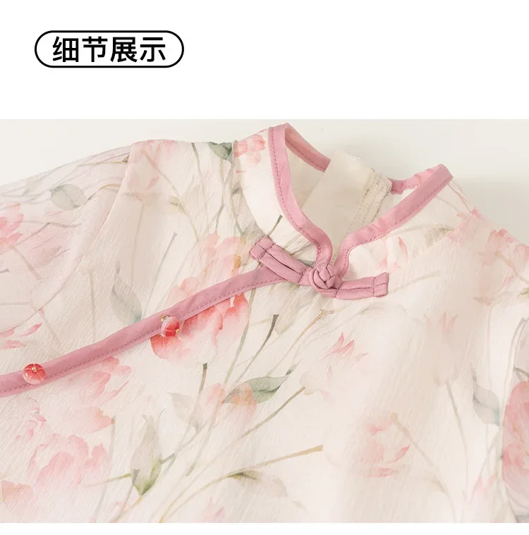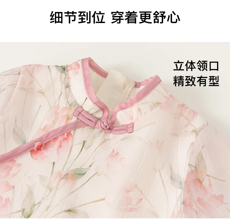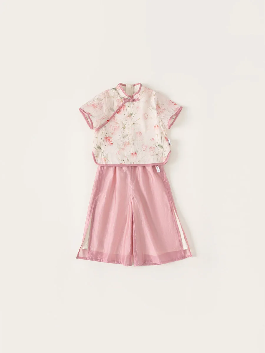 Ropa de Boutique de verano para niñas, 2 piezas, estilo chino, moda de flores, Tops rosas de manga corta para bebés + Pantalones de malla, ropa para niños B118