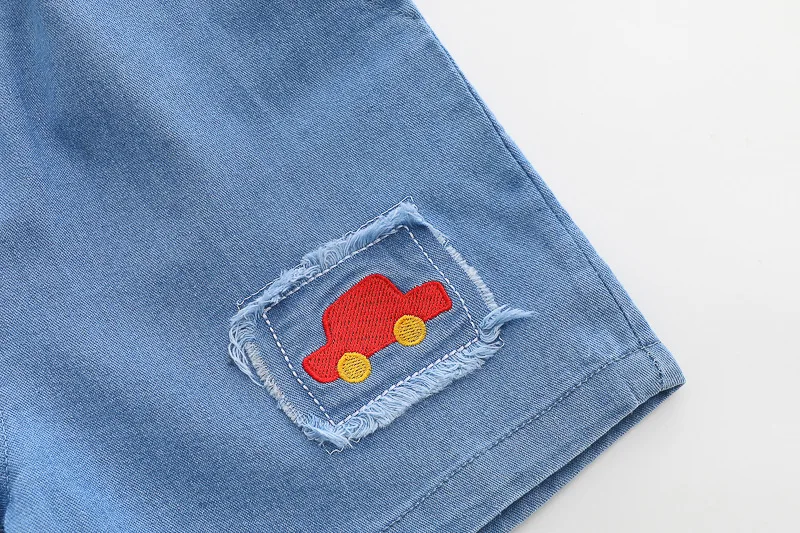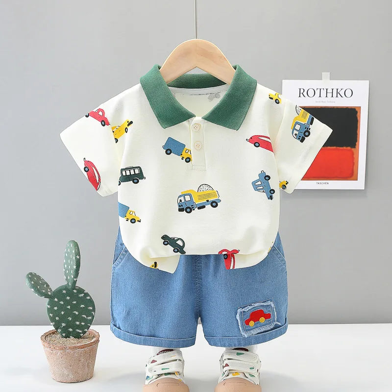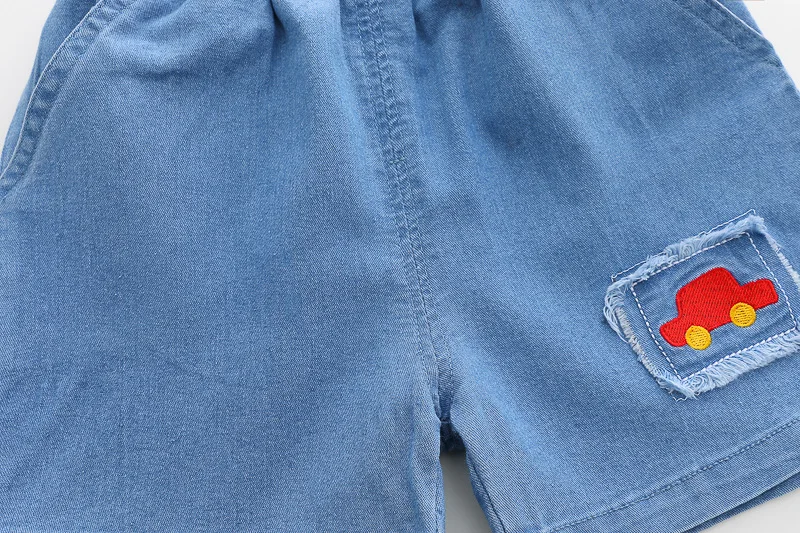 Ropa de Boutique de verano para niños, 2 piezas, moda coreana para niños pequeños, camisetas de manga corta con dibujos animados para bebés + Pantalones cortos de mezclilla, ropa para niños B147