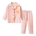 Comprar Ropa de casa de algodón para niños y niñas, conjunto de pijamas informales con solapa y patrón de dibujos animados, bonito pijama de bebé, traje de pantalones, primavera y otoño, nuevo