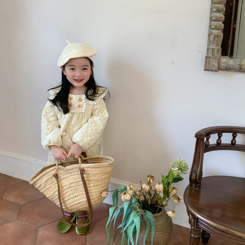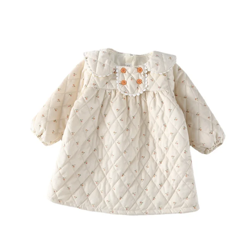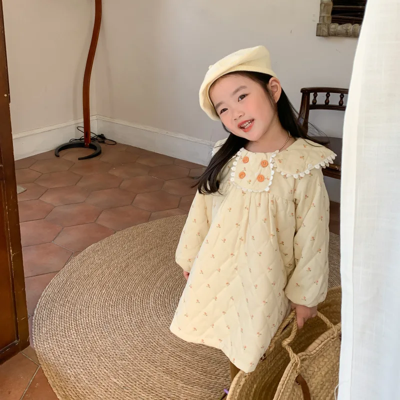 Comprar Ropa coreana para niñas, ropa de otoño e invierno, vestido Floral de estilo extranjero, falda acolchada y gruesa, falda de princesa para bebé