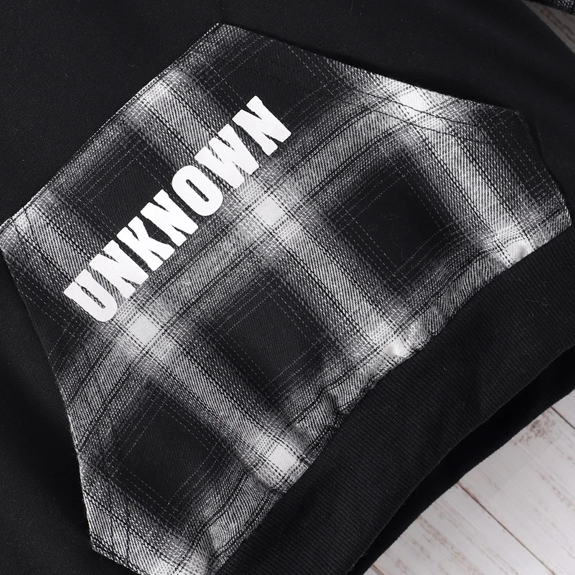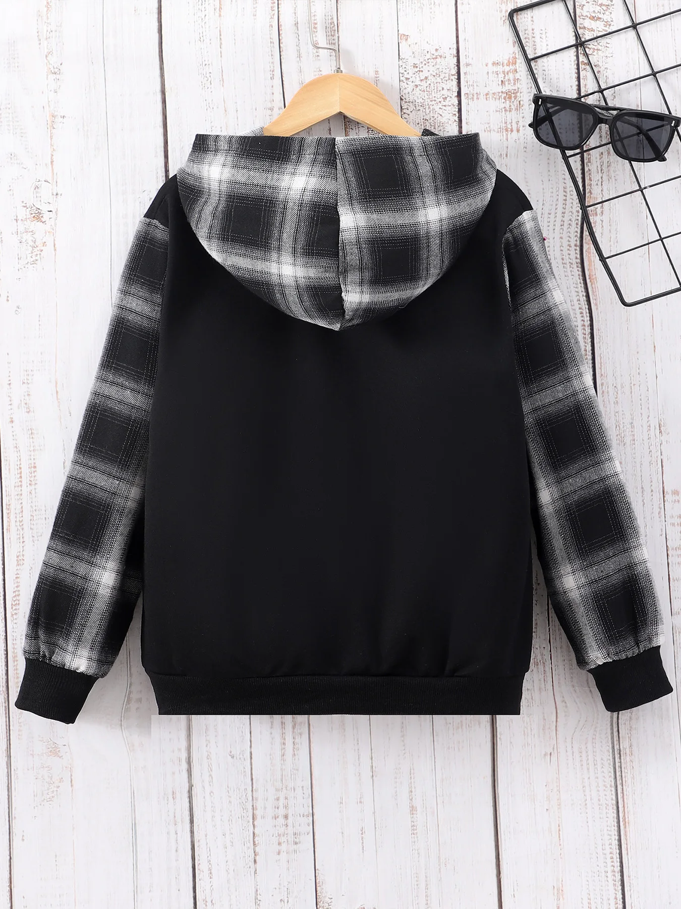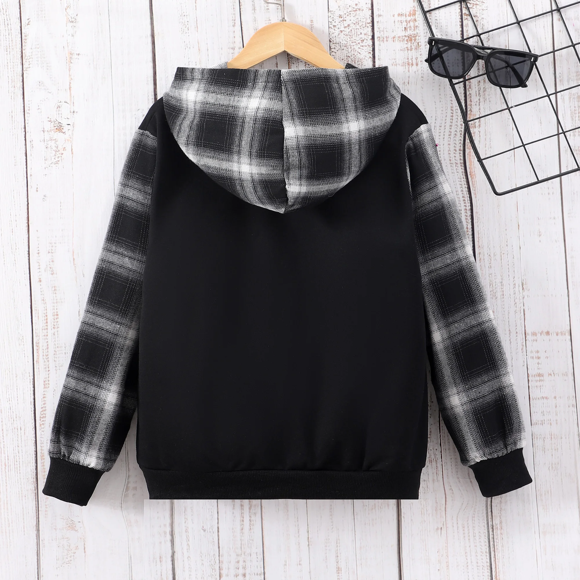 Comprar Ropa deportiva para niños, Top de manga larga con capucha, Patchwork a cuadros, estampado de letras, moda minimalista, otoño e invierno, nuevo