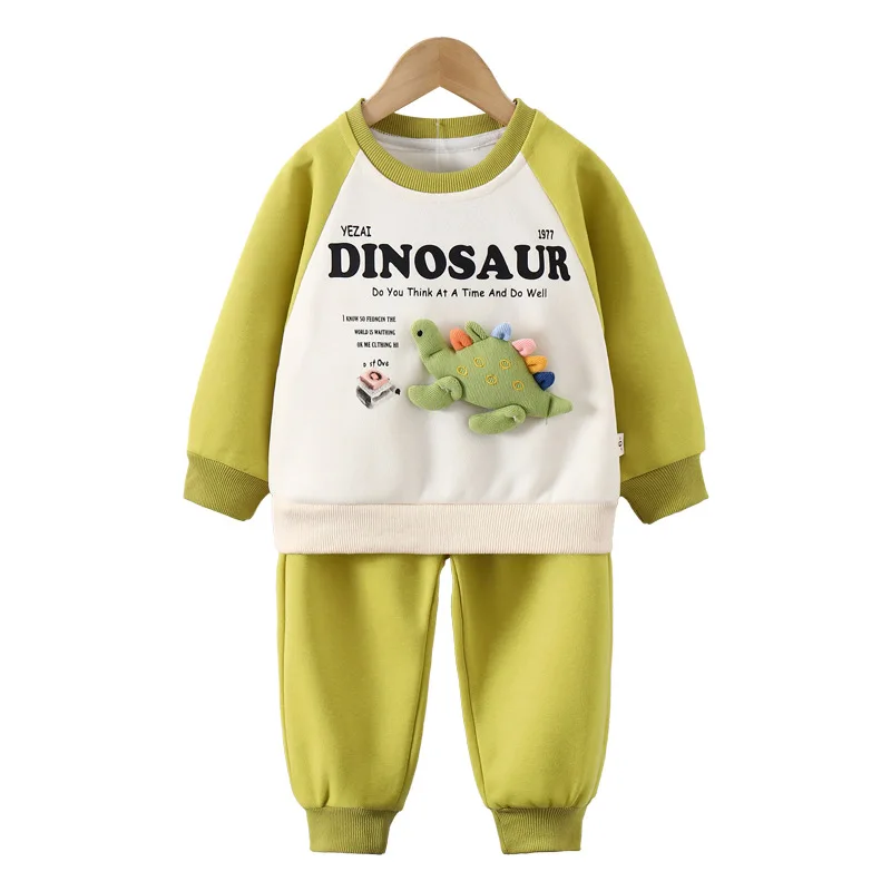 Ropa de dinosaurio tridimensional de dibujos animados para niños, traje de otoño, conjunto versátil de moda para niños, ropa cálida y cómoda para niños