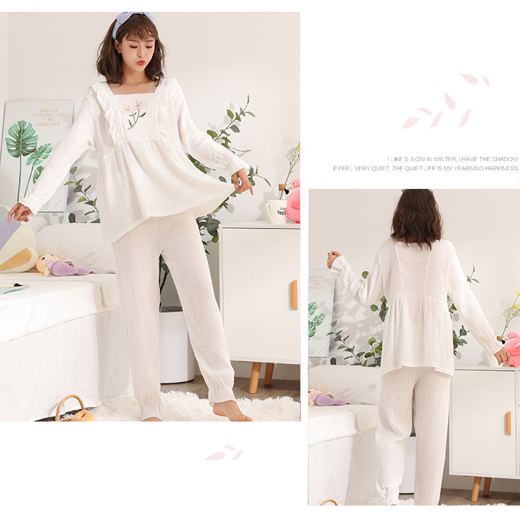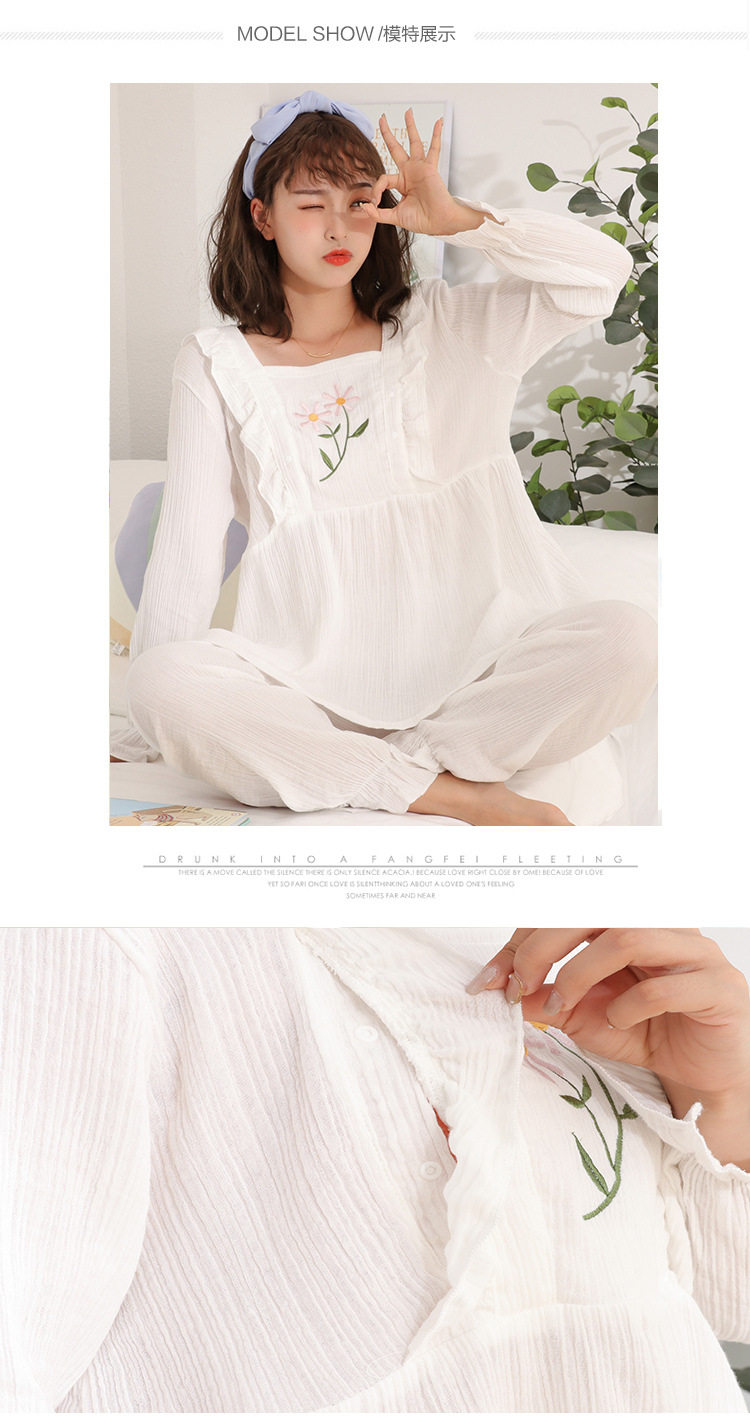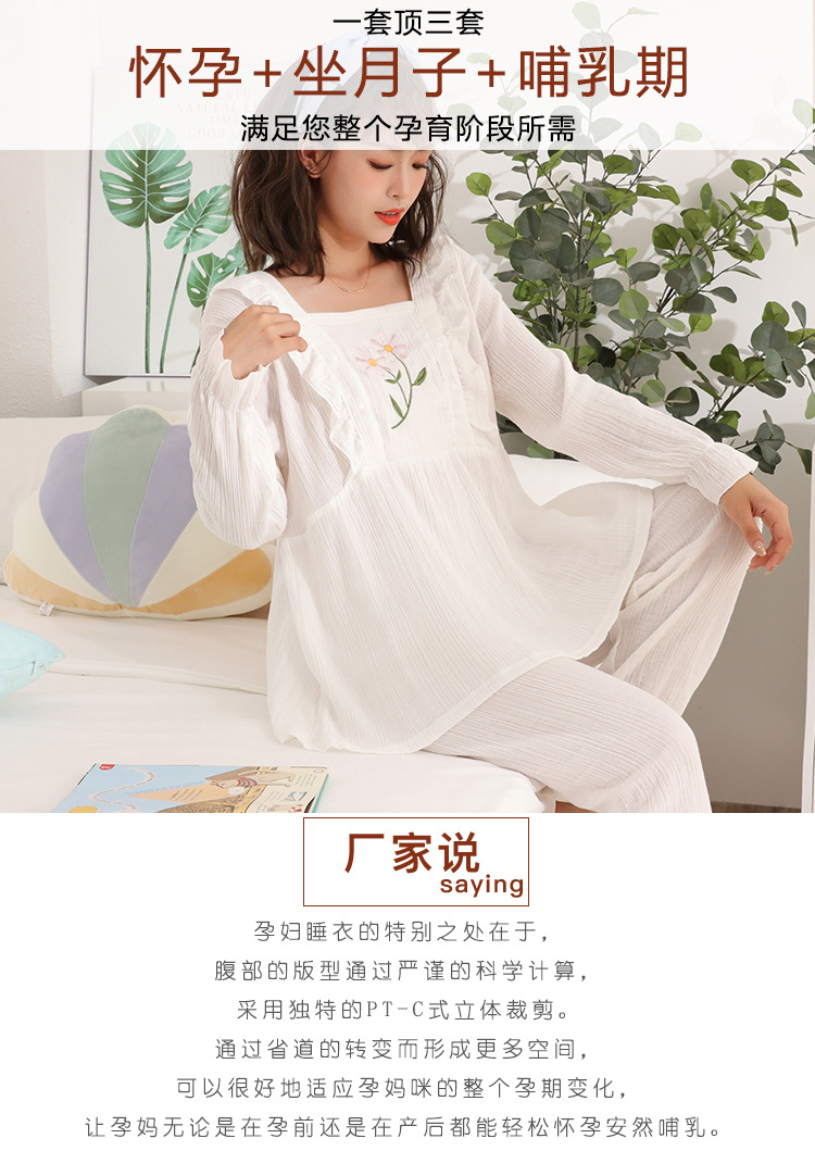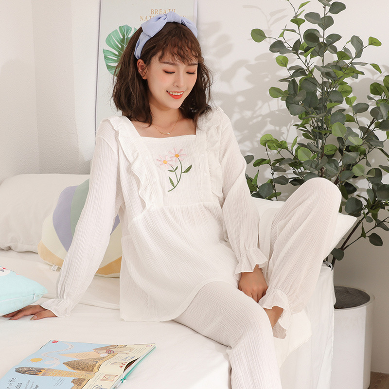 Primavera 100% algodón arrugado paño de lactancia pijamas fino cómodo transpirable mujeres embarazadas ropa de dormir de lactancia