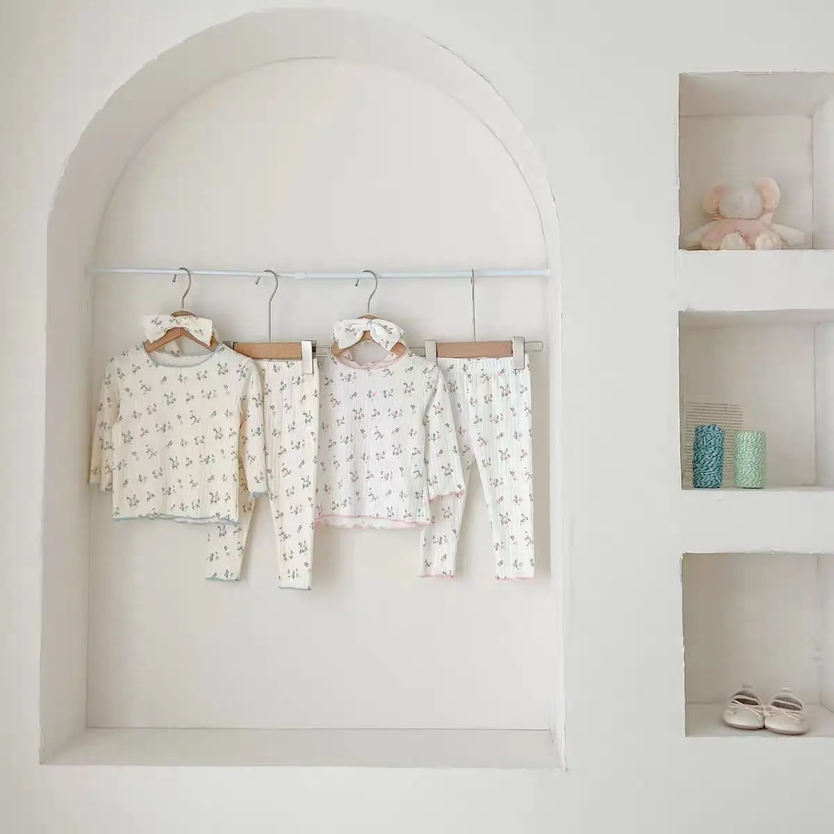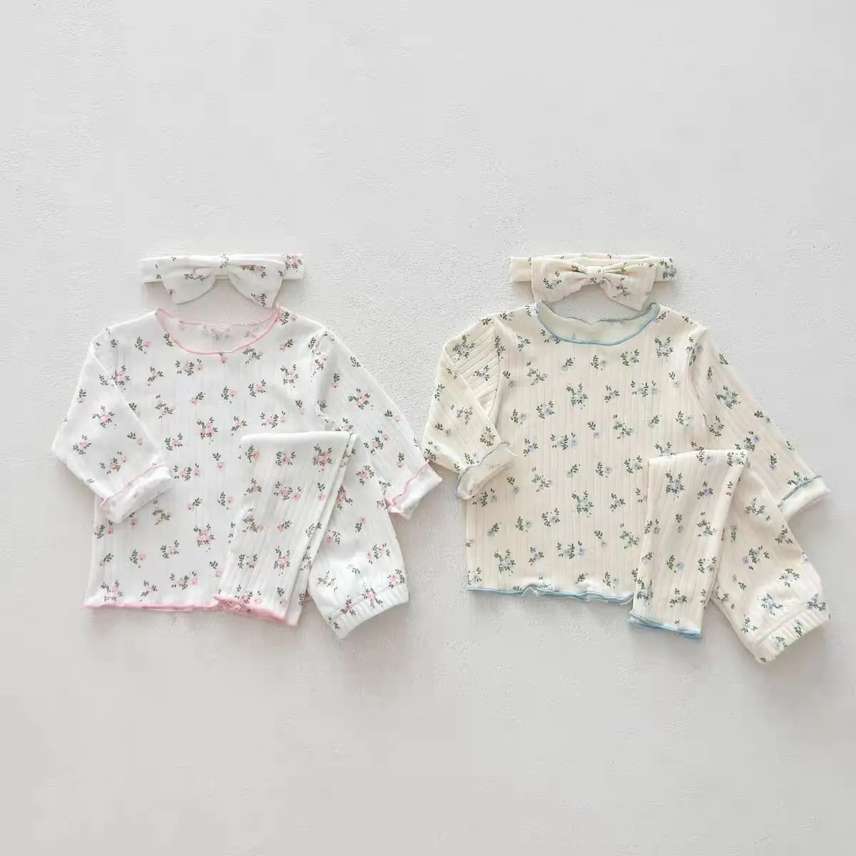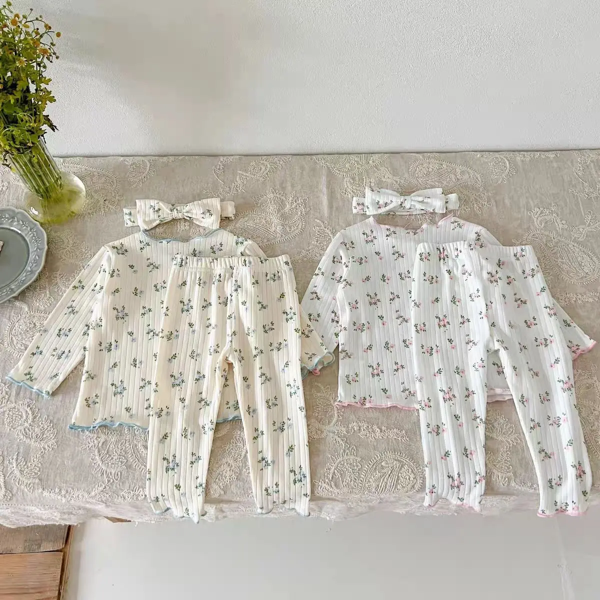 Ropa de dormir Floral bonita para niña, pijama de algodón suave con estampado estético de flores, conjunto de Tops y pantalones para niña, ropa de dormir bonita de moda