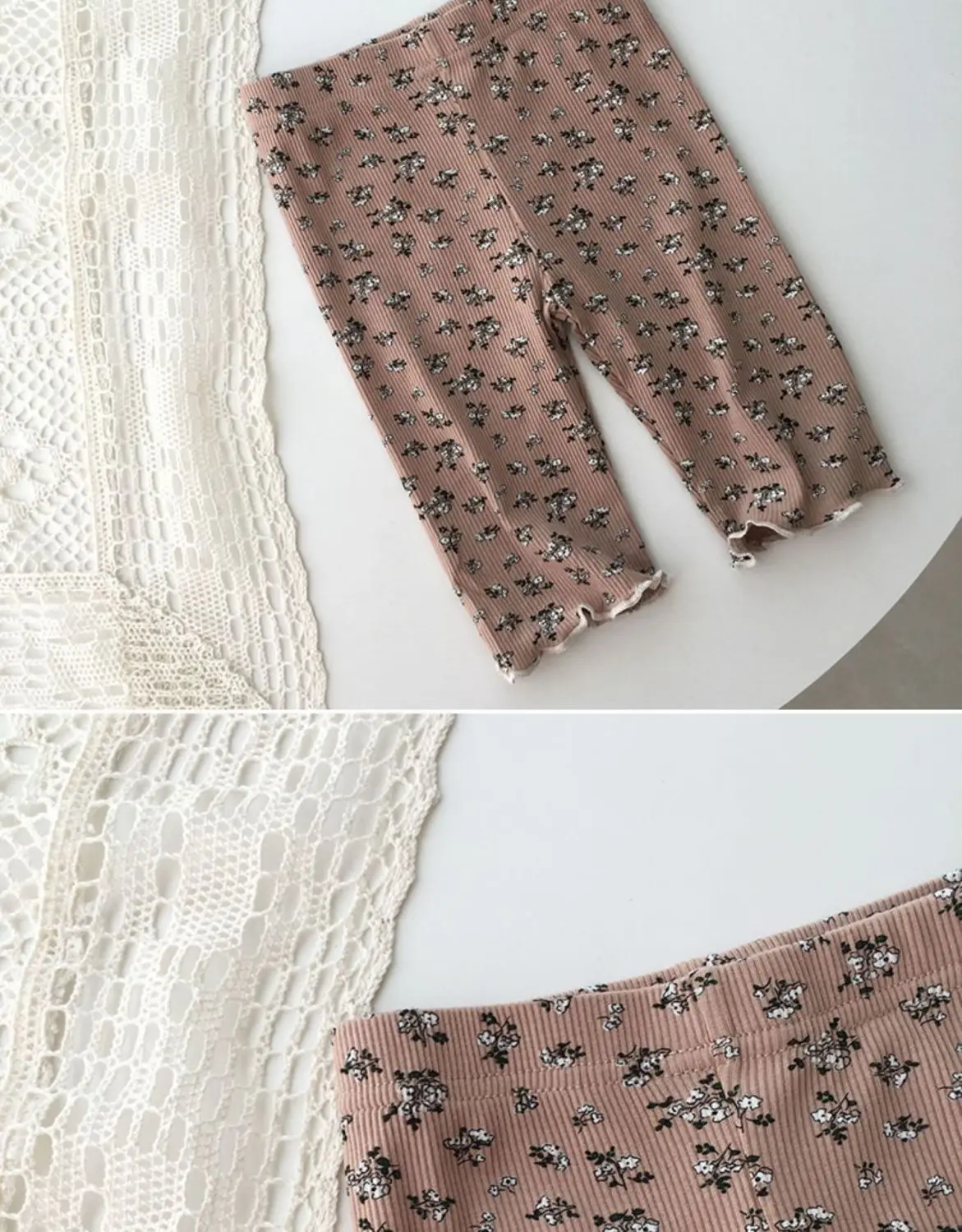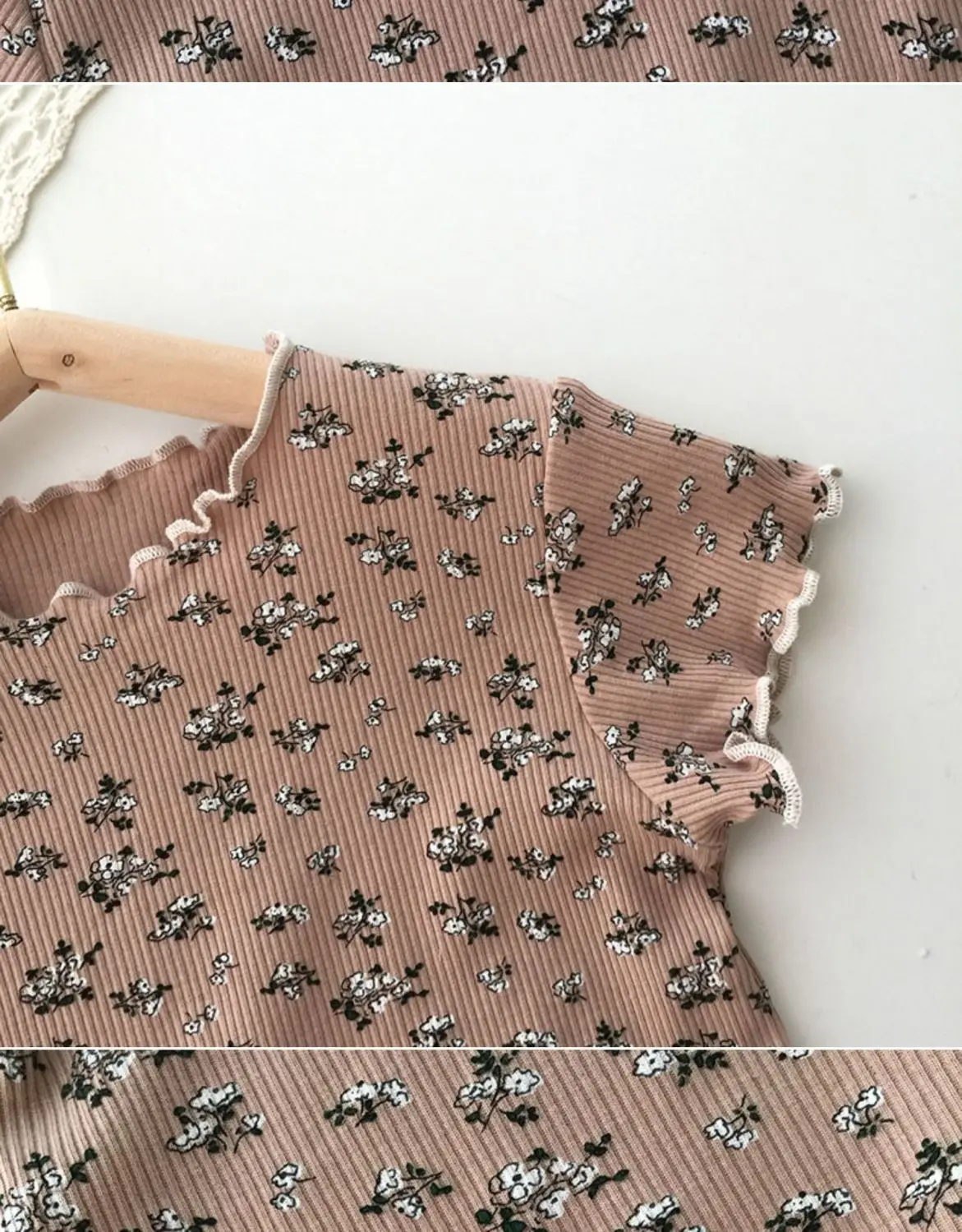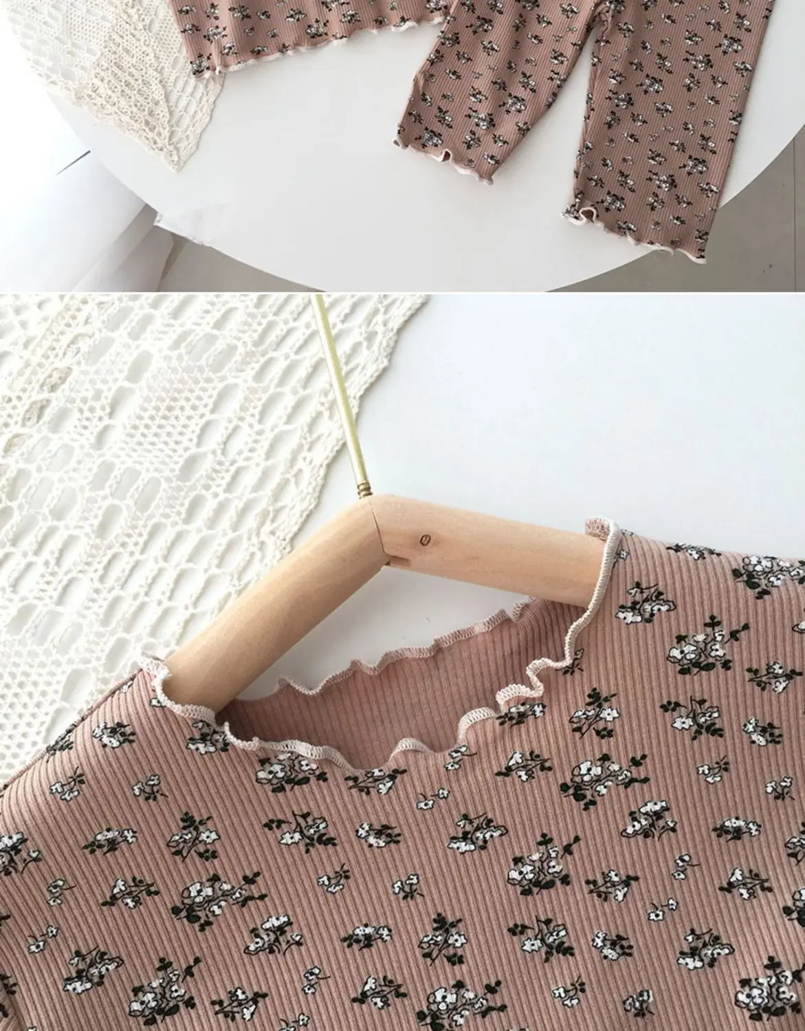 Ropa de dormir de verano de seda helada para niña, conjunto de pijama Floral con estampado bonito de Color café Beige para niños, Tops cortos de algodón suave, pantalones