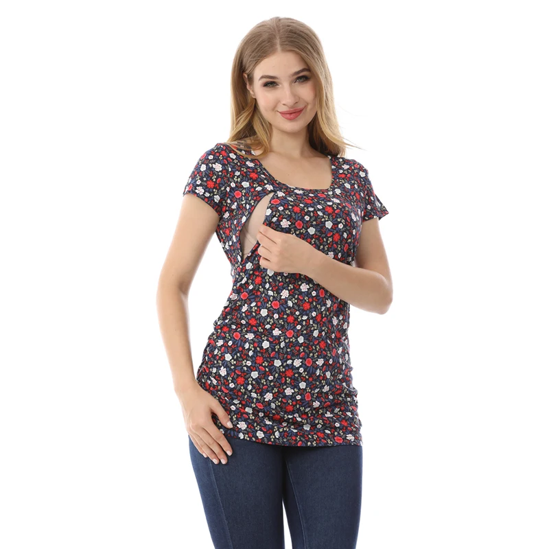Comprar Ropa de embarazo de verano, ropa de maternidad con estampado Floar, ropa de lactancia, camisetas de lactancia para mujeres embarazadas, camiseta de lactancia