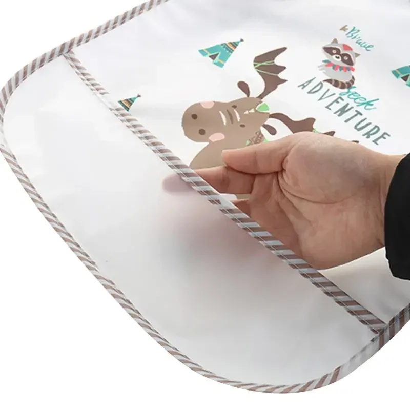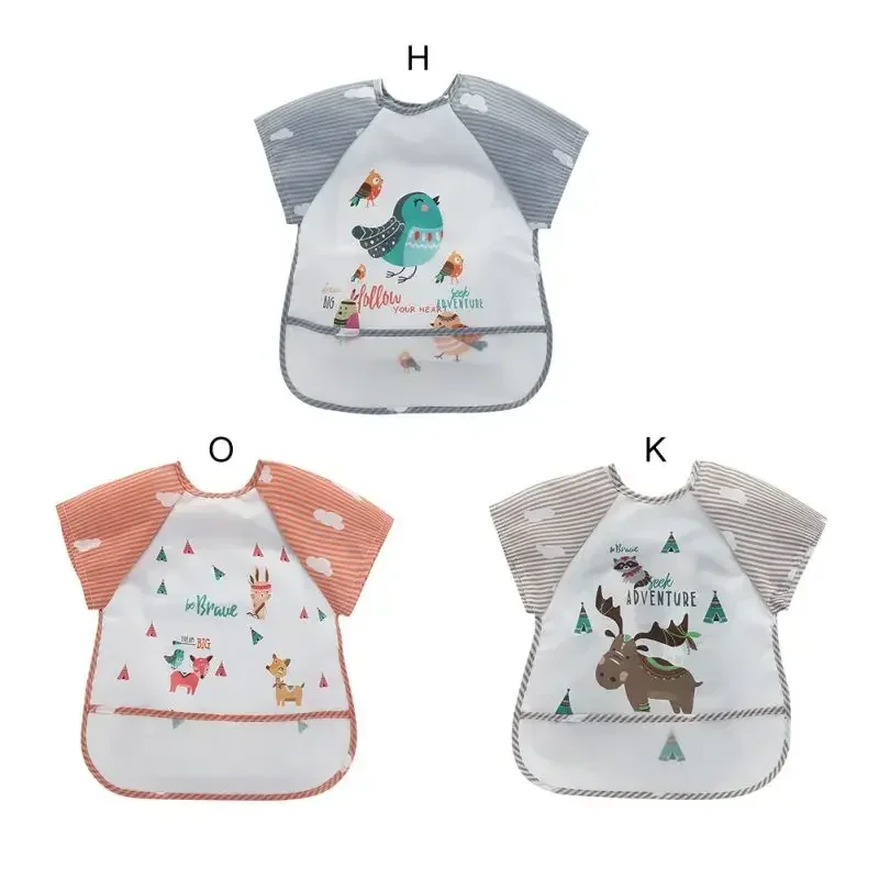 Características:100 nuevo y de alta calidad1.La capa exterior está diseñada para evitar que los granos de arroz se caigan durante las comidas y para mantener objetos pequeños con el bebé cuando juega.2.Resistente al agua y fácil de limpiar.La parte posterior de todo el cofre está hecha de material impermeable, que es seguro para la madre.3.Afina la delicada piel del bebé, la piel es suave y permite que el bebé se estire libremente.4.Mangas elásticas elásticas, suaves y cómodas sin tensión, sin restricciones en la muñeca.5.Patrón de impresión de dibujos animados, animado y lindo, no se cae fácilmenteDescripción del producto: