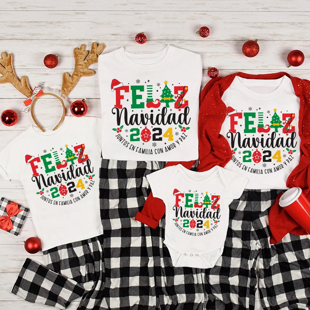 Comprar Ropa con estampado de Feliz Navidad Para Familia, camisas a juego para mamá, papá, niños, camiseta, pelele para bebé, 2024