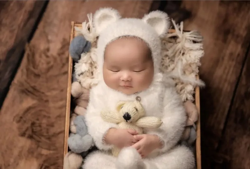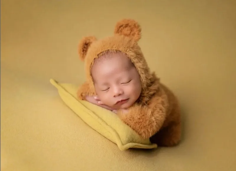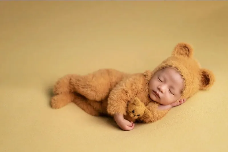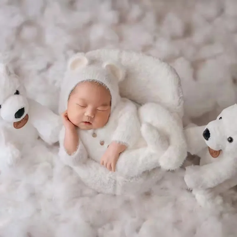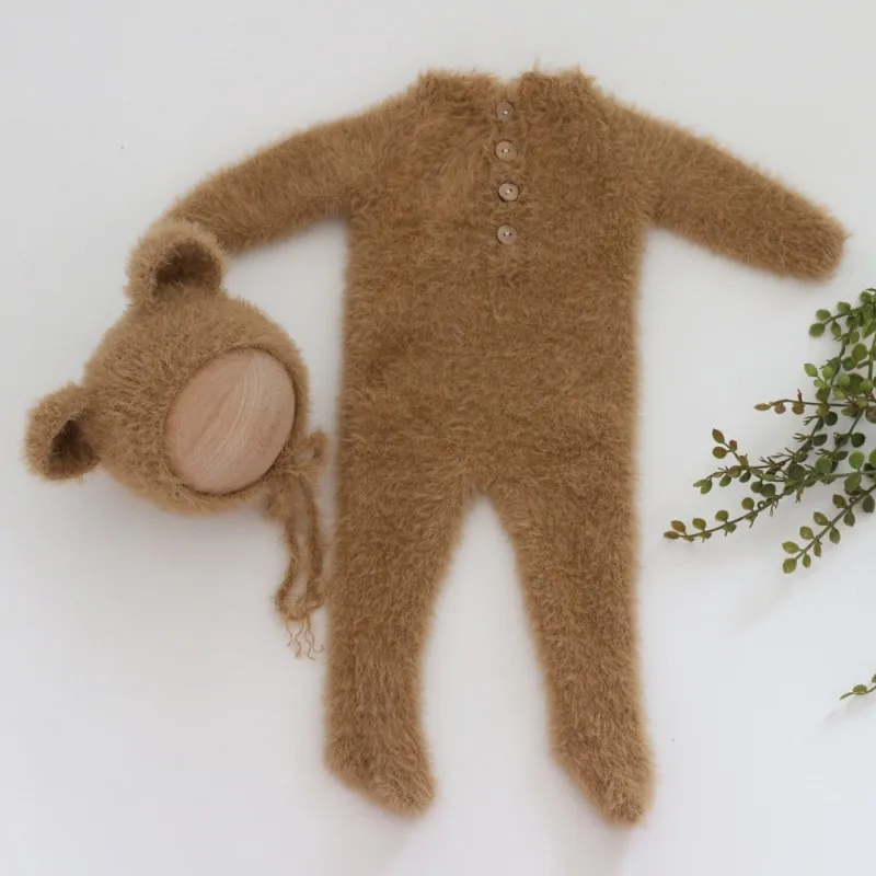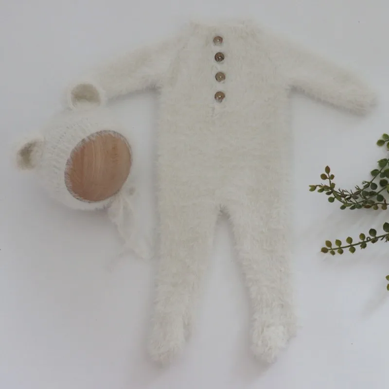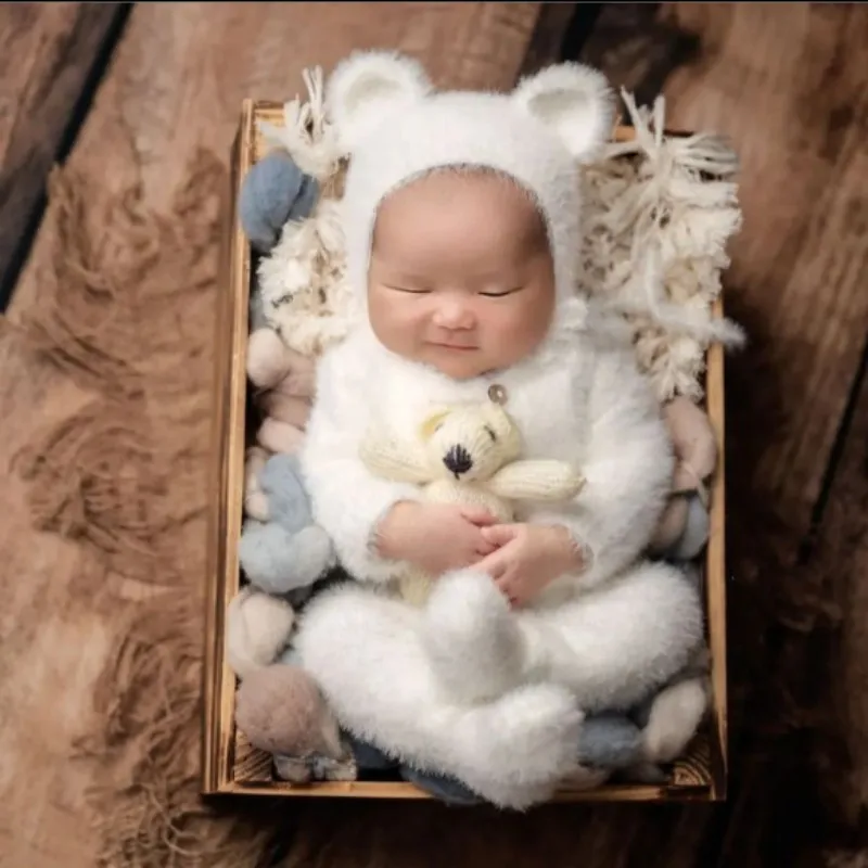 Comprar Ropa de fotografía para recién nacidos, pelele de punto bonito + traje con sombrero, monos para bebés y niños, conjunto de bebé con orejas de oso de lana de visón suave
