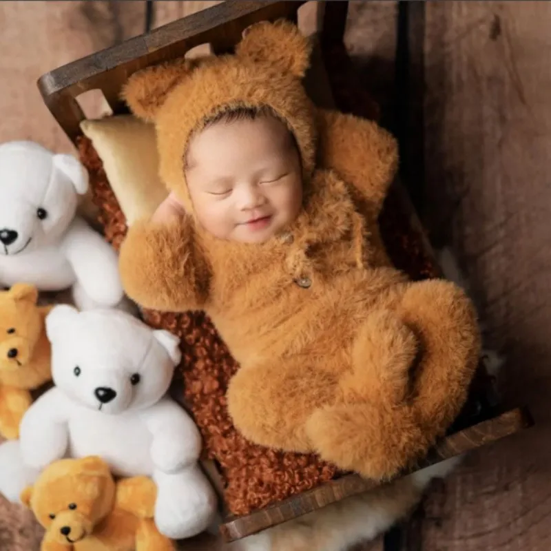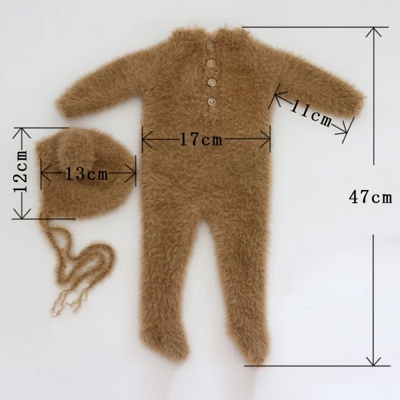 Comprar Ropa de fotografía para recién nacidos, pelele de punto bonito + traje con sombrero, monos para bebés y niños, conjunto de bebé con orejas de oso de lana de visón suave