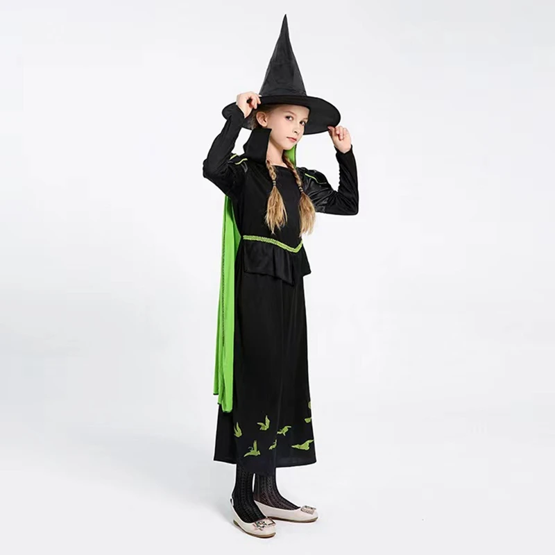 Ropa de Halloween para niños, disfraces de Mago de Halloween para niñas, vestido con sombrero, ropa de actuación de escenario de fiesta de noche de moda para niños