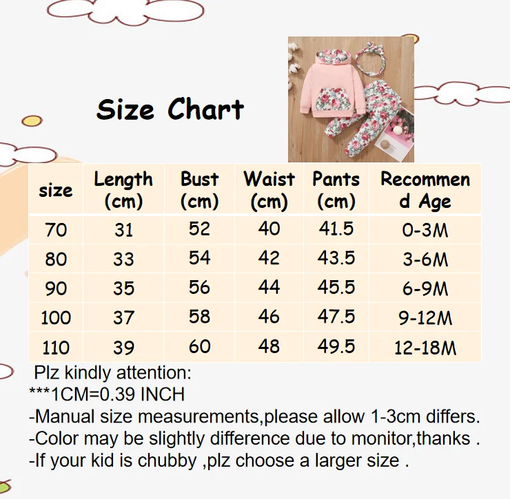 Comprar Ropa infantil de 3 piezas, conjunto Floral para niña recién nacida de 0 a 3, ropa con capucha, traje de bebé de manga larga, sudaderas de Otoño Invierno