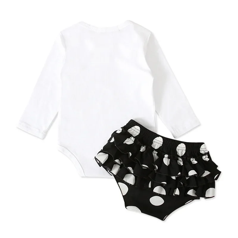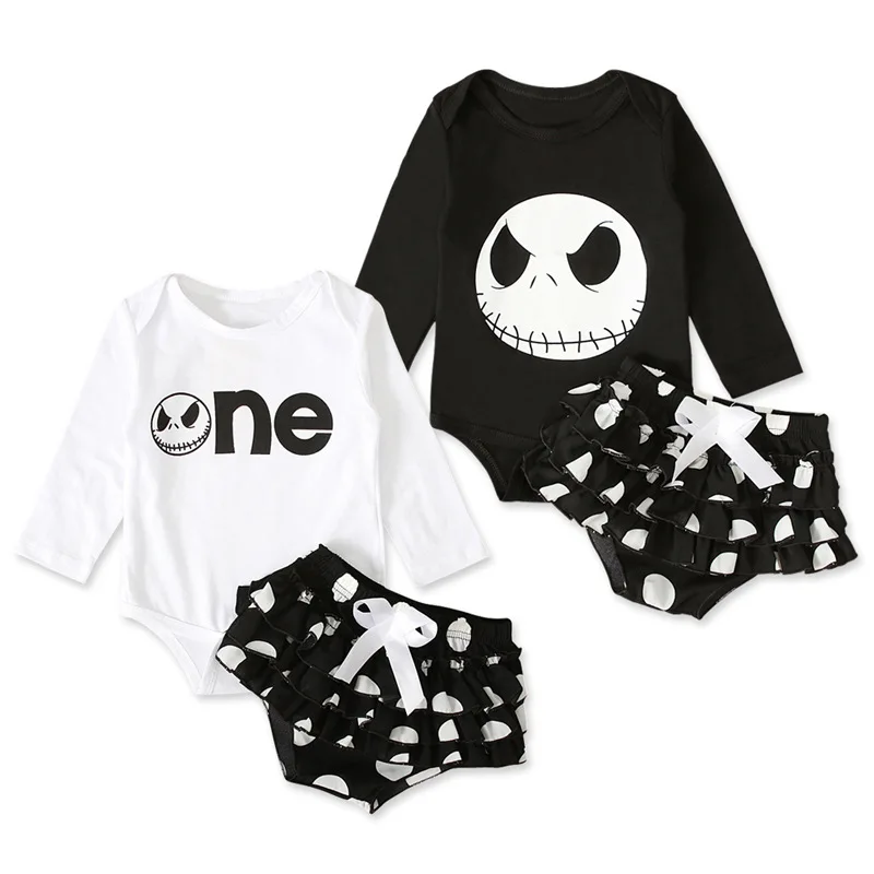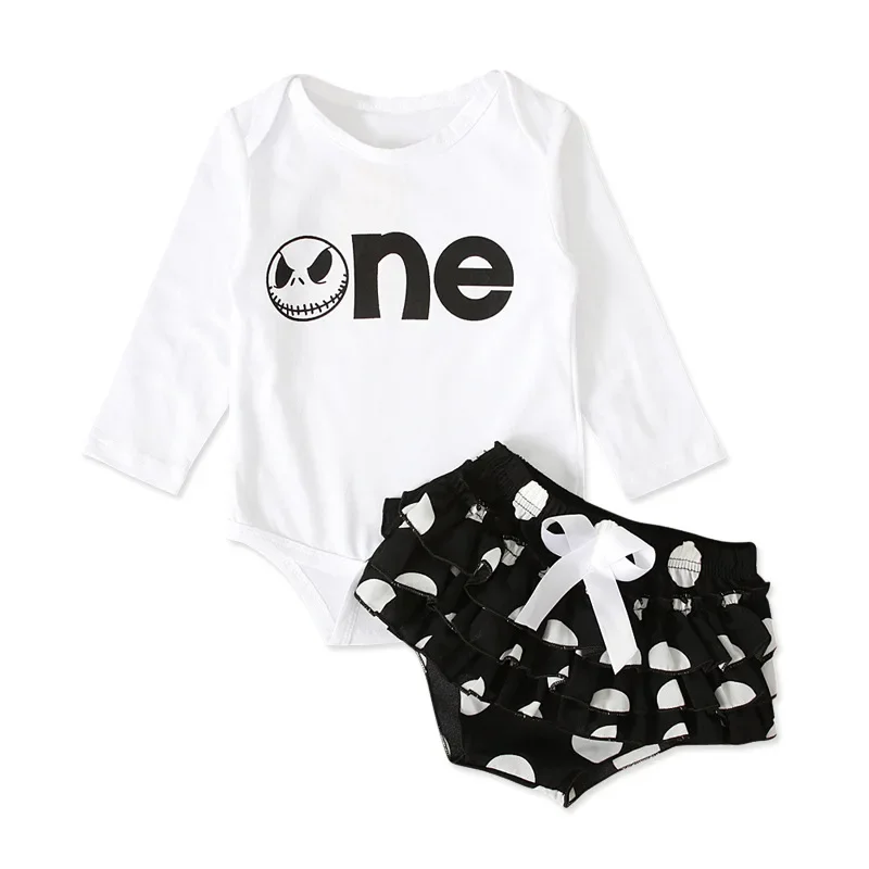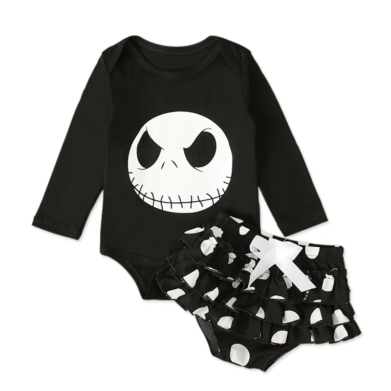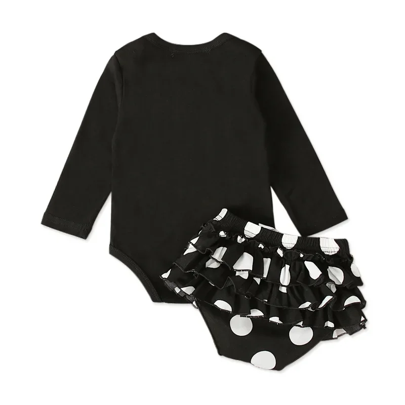 Ropa infantil de Halloween para primavera y otoño, Tops de manga larga con estampado de dibujos animados y pantalones cortos de lunares, artículos para recién nacidos B137, 2 piezas
