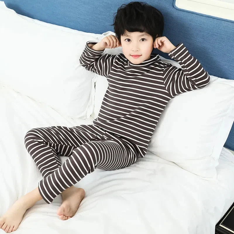 Comprar Ropa interior a rayas para niños, traje de franela, Top, pantalones, ropa cálida para niñas, ropa de ocio, pijama para niños