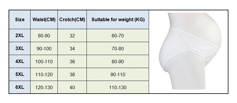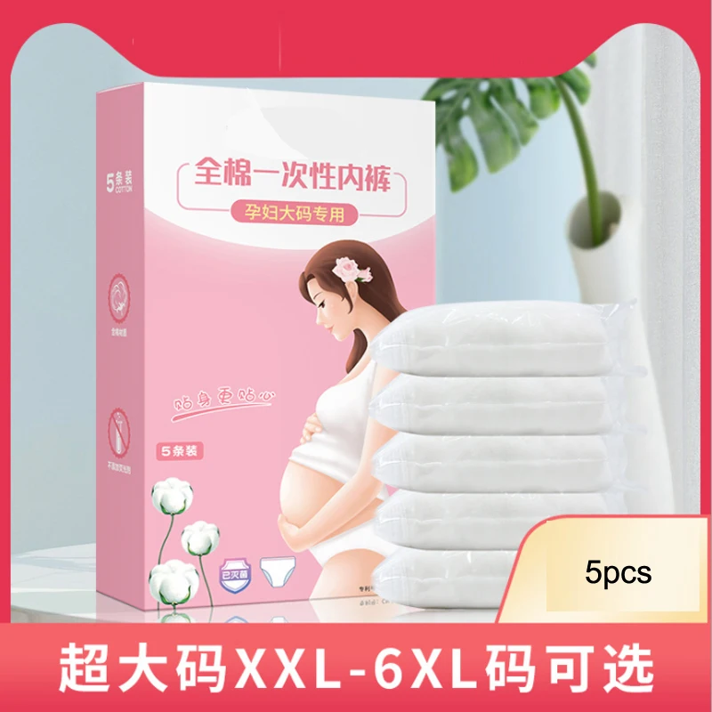Descripciones: 5 unids/lote de ropa interior desechable, bragas para embarazadas, calzoncillos posparto de algodón de talla grande para mujeres grandes, 2XL a 6XL