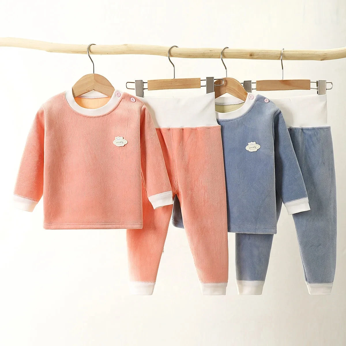 Comprar Ropa interior térmica de forro polar de cintura alta para bebé, traje Simple para niños, ropa de casa gruesa, pijamas de fondo para niños y niñas, Otoño e Invierno