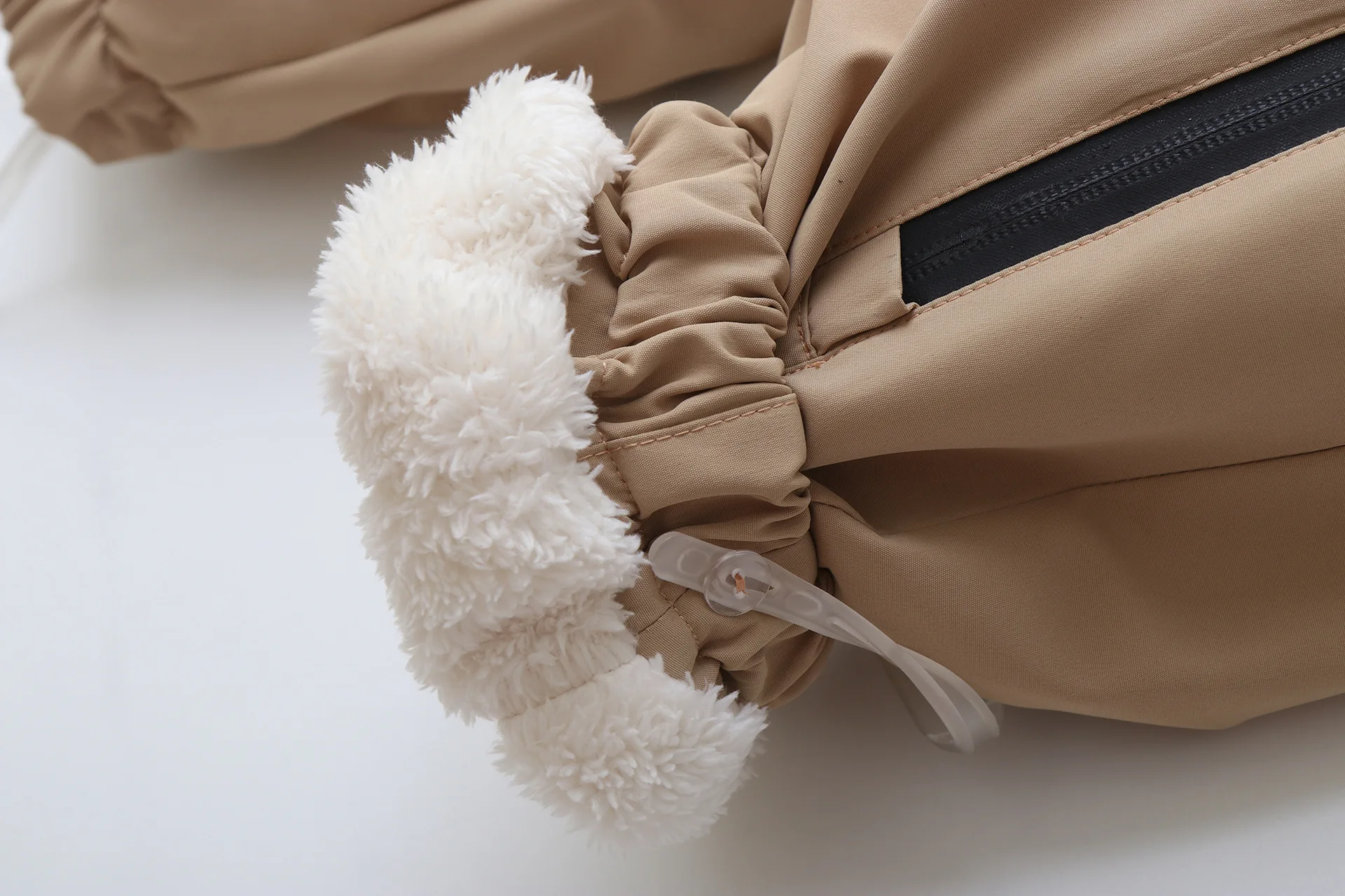 El traje está forrado con lana de cordero en el interior y relleno con plumón de algodón de alta calidad en la capa intermedia, lo que garantiza comodidad y calidez.