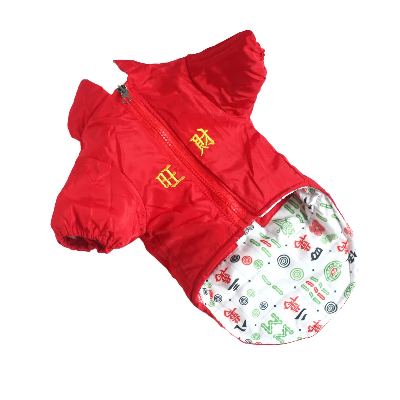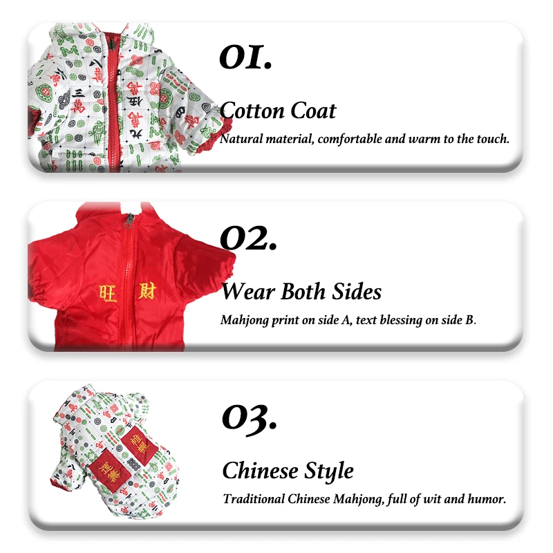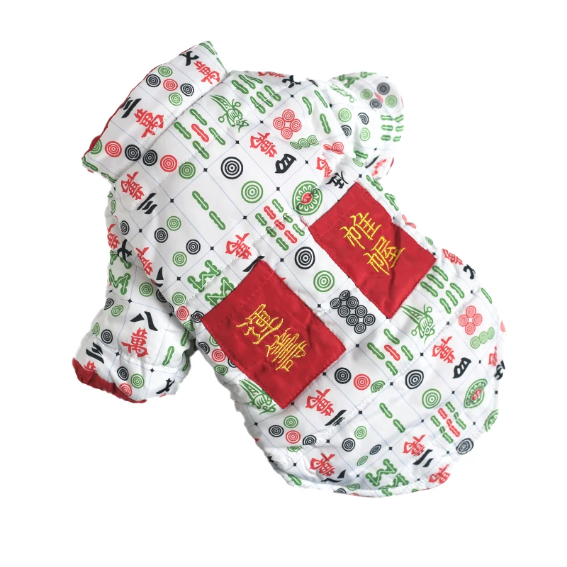 Ropa de invierno con estampado de Mahjong chino para Bulldog Francés, monos de algodón puro para mascotas, chaqueta para cachorros pequeños de buena suerte