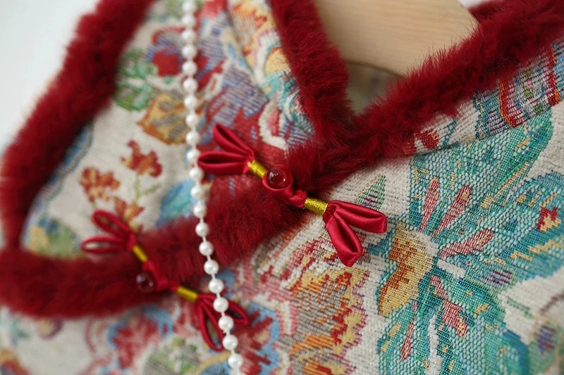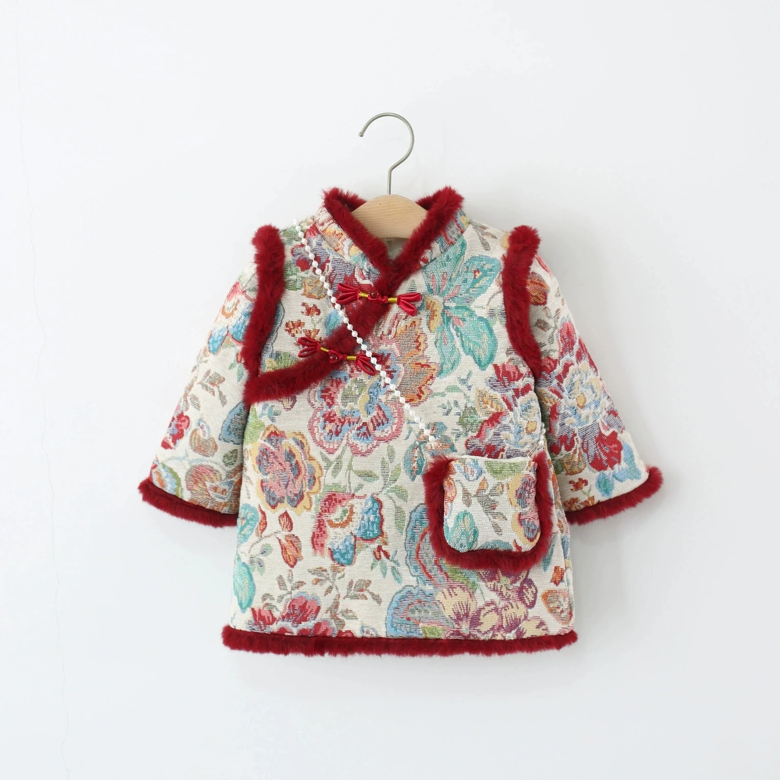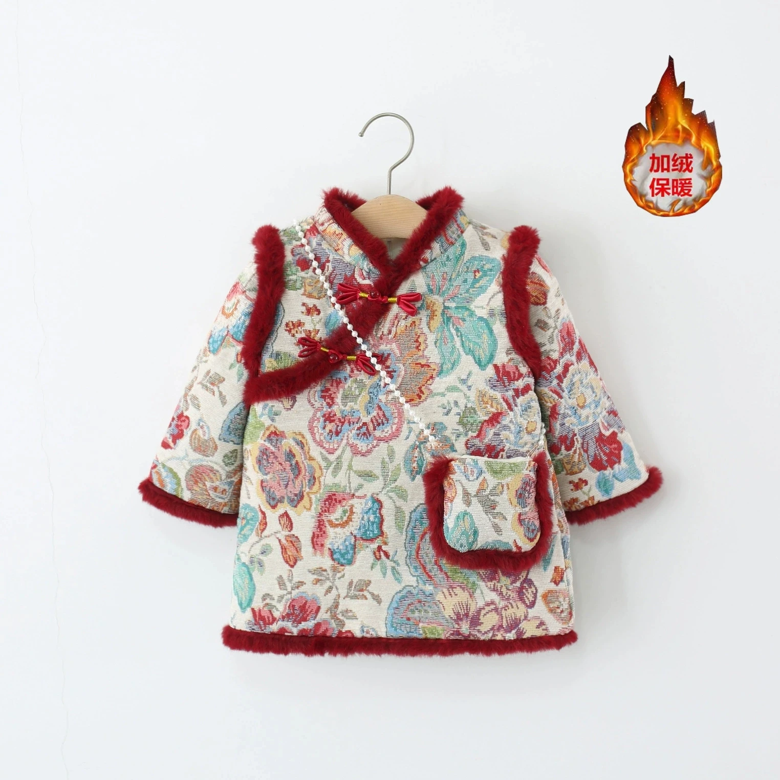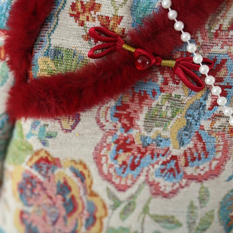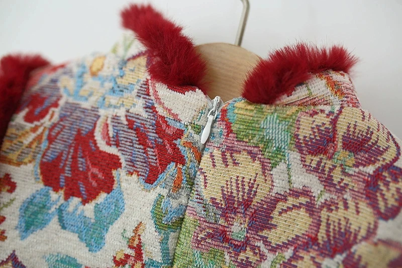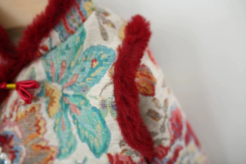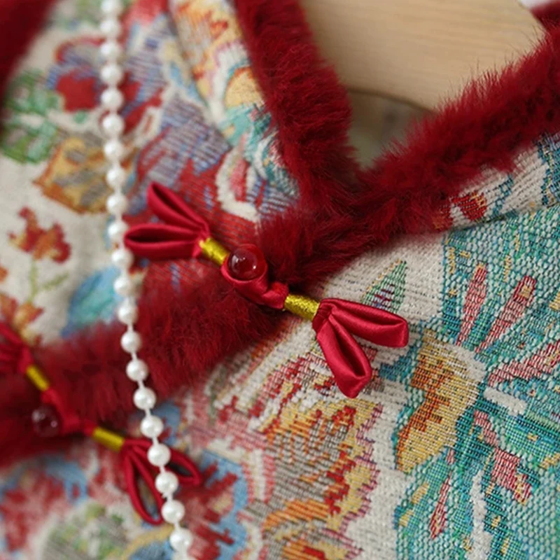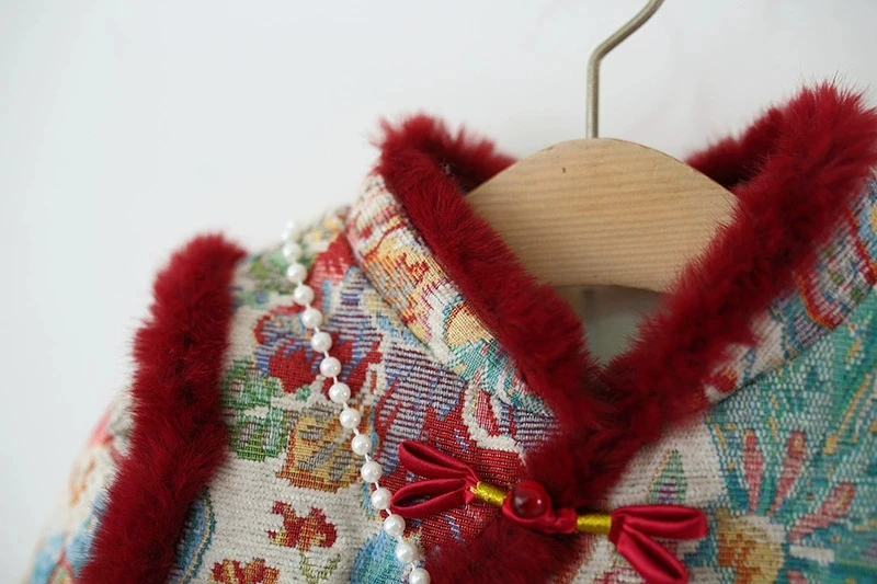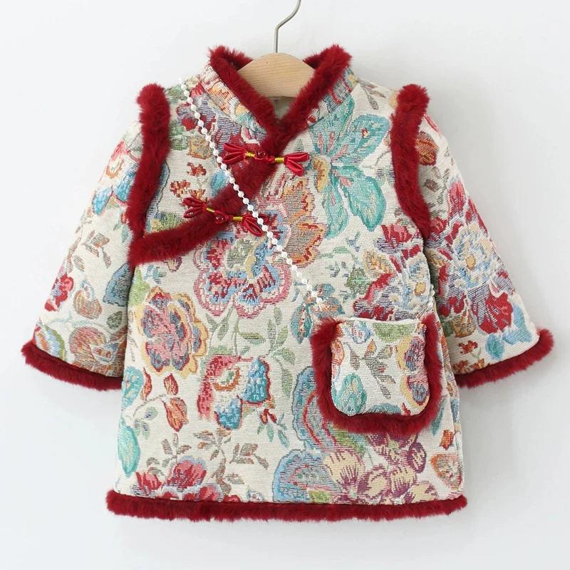Ropa de invierno para niñas, 2 piezas, 1er cumpleaños, estilo chino, bordado de lana, vestidos gruesos cálidos para bebés + bolsa, vestido Vintage BC420
