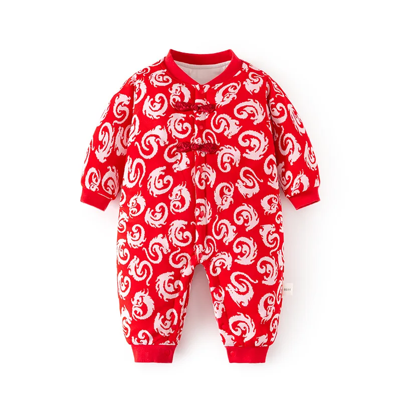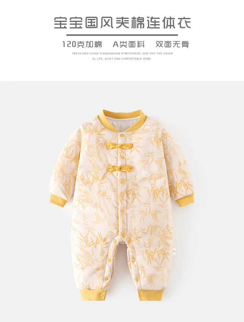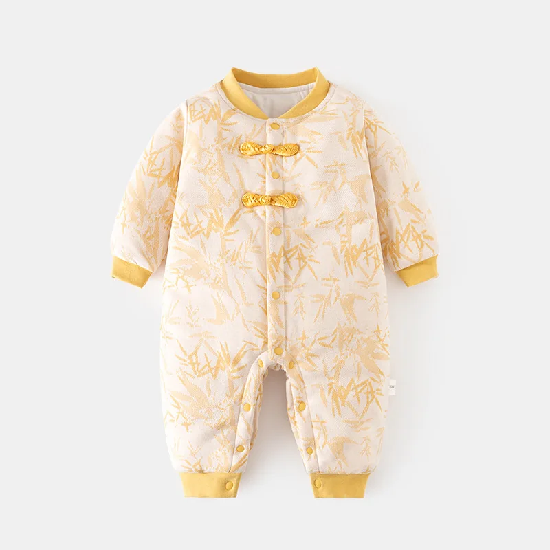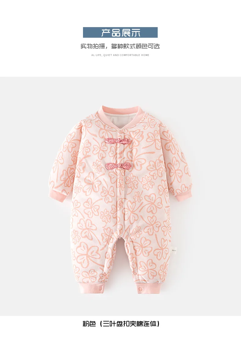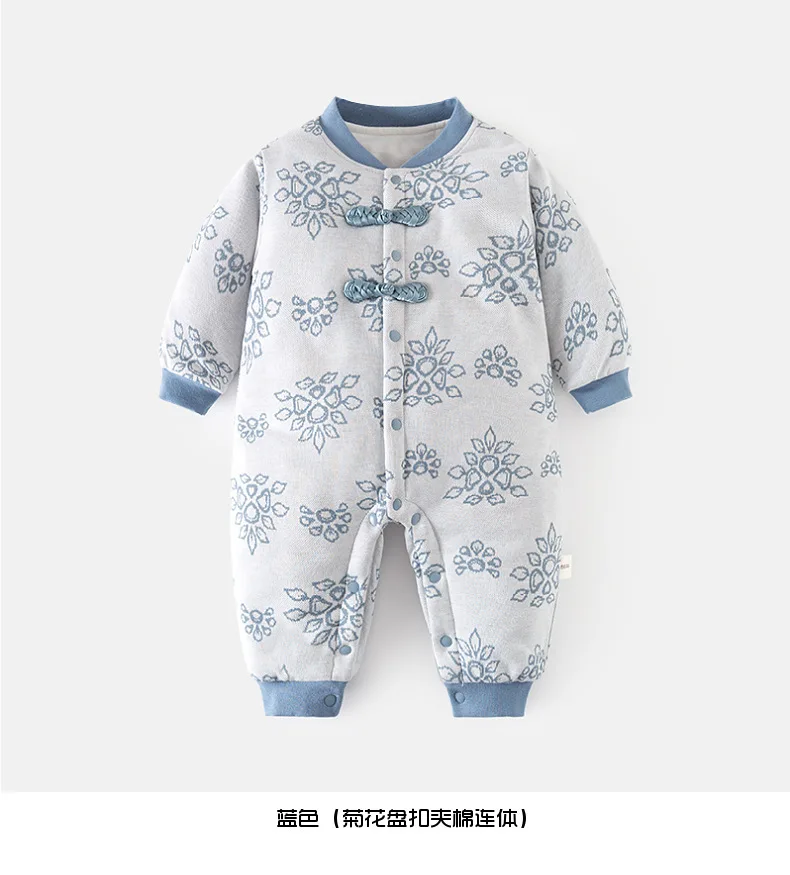Ropa de invierno para niñas y niños recién nacidas, monos de algodón gruesos y cálidos con estampado de flores bonitas de estilo chino, peleles, ropa de Boutique para bebés BC428
