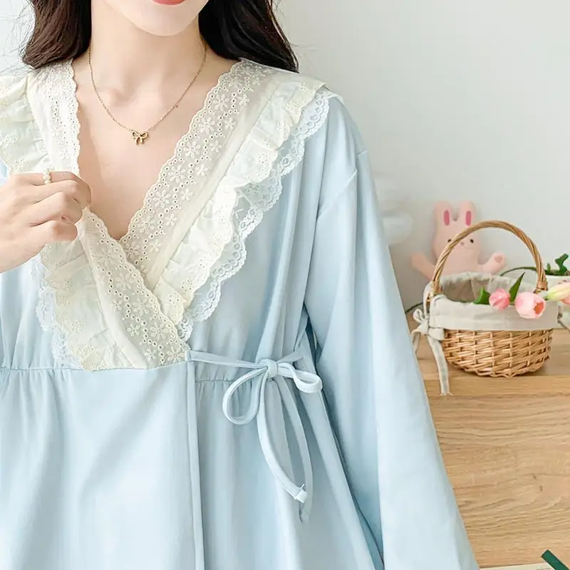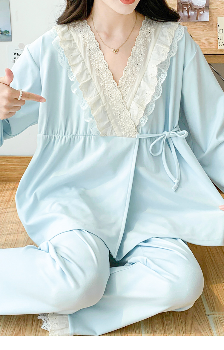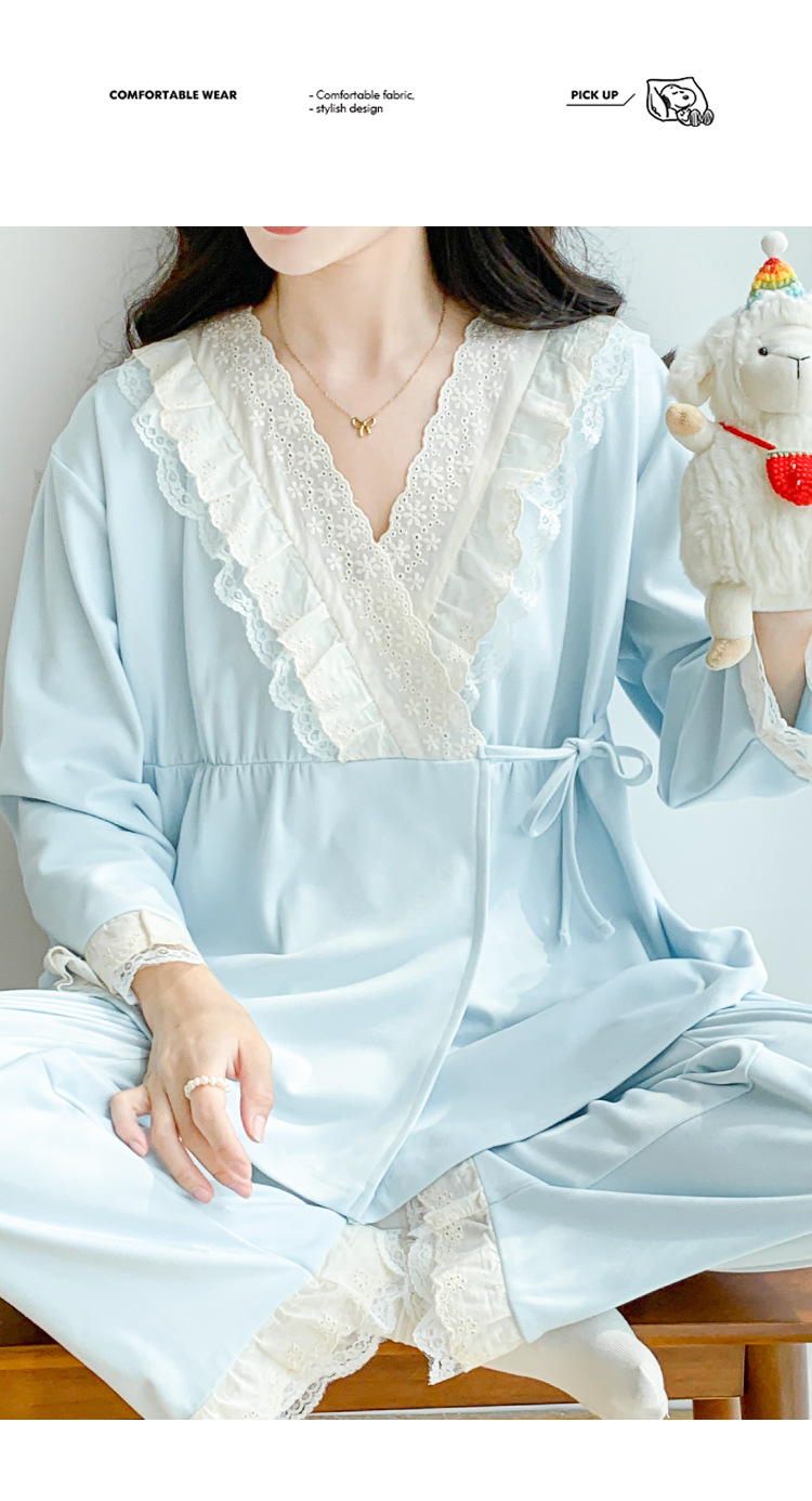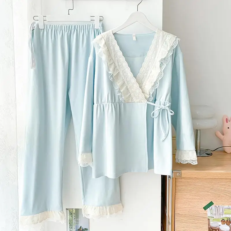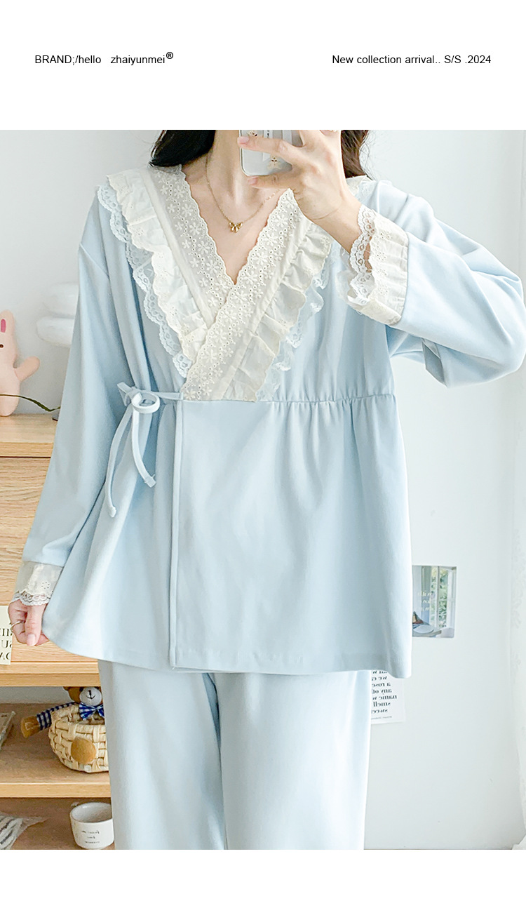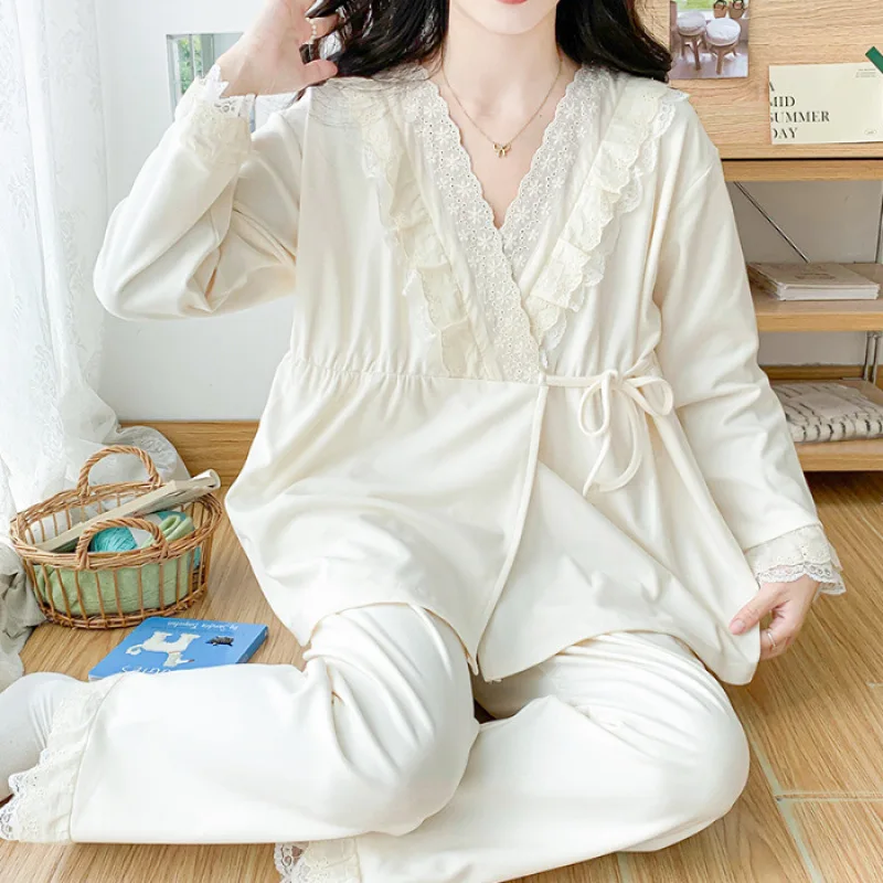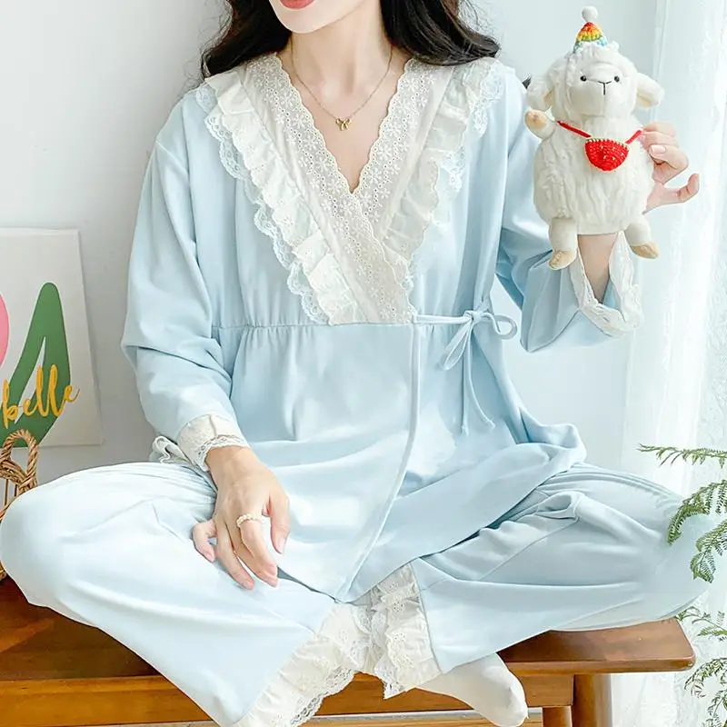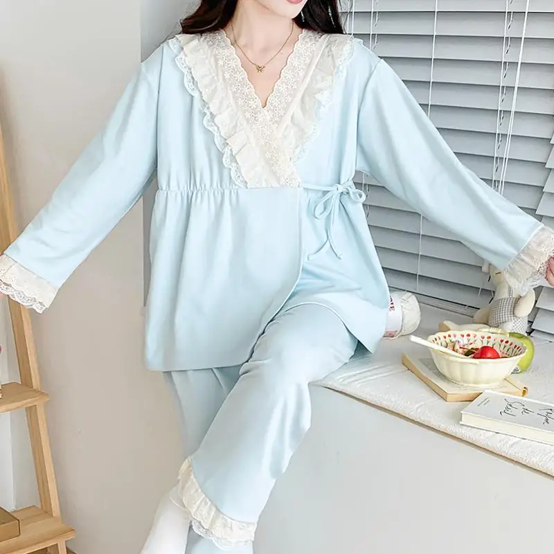 Ropa de lactancia, pijamas de maternidad, pijama acrílico para embarazadas, moda de gasa lisa, ropa de dormir para amamantar, conjunto de Tops y pantalones