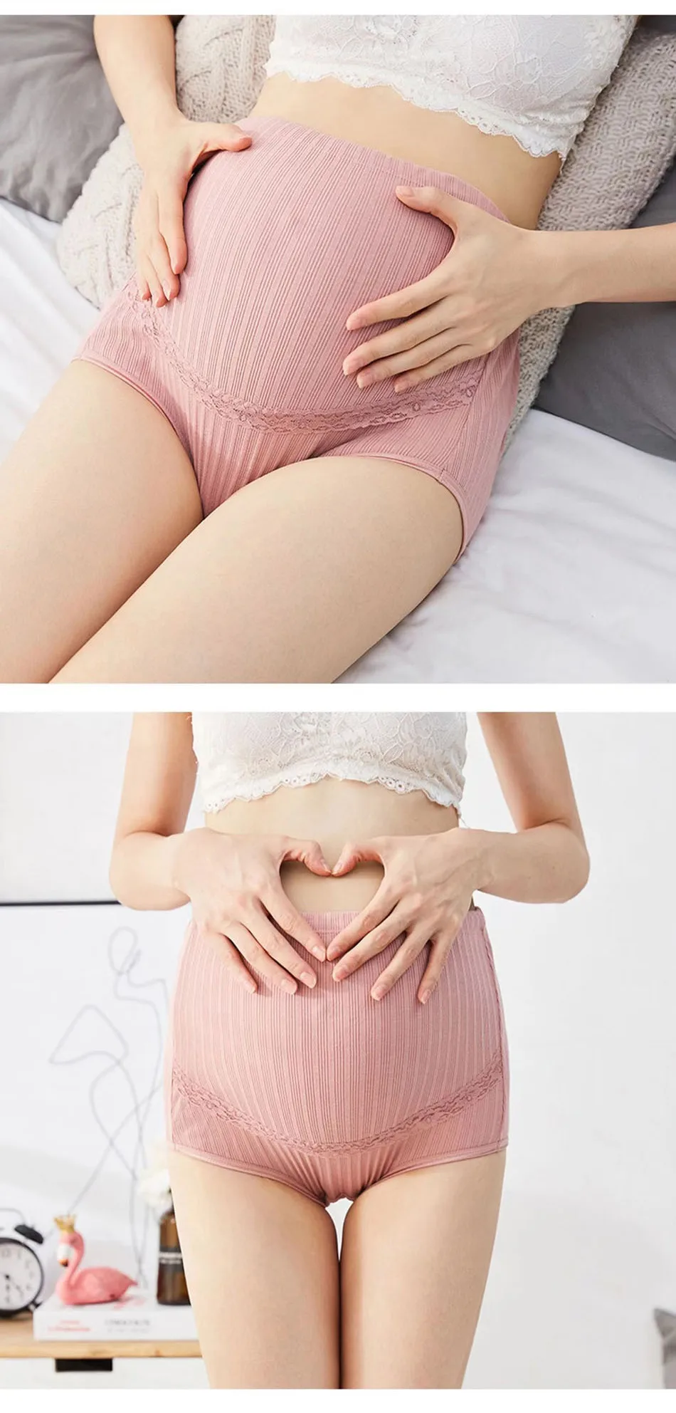 Nombre: Ropa de maternidad de algodón, ropa íntima para embarazadas de cintura alta, bragas de soporte para el vientre para mujeres embarazadas, bragas cómodas de Color sólido