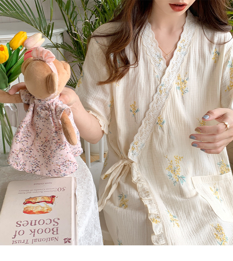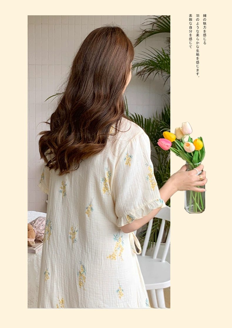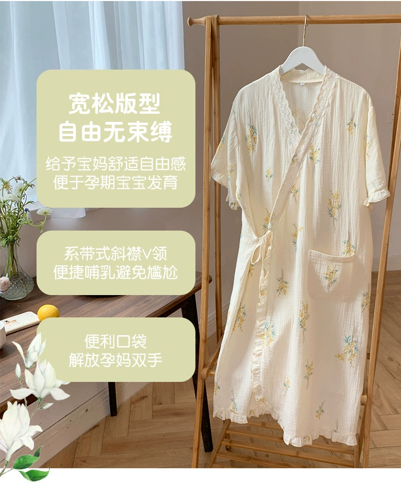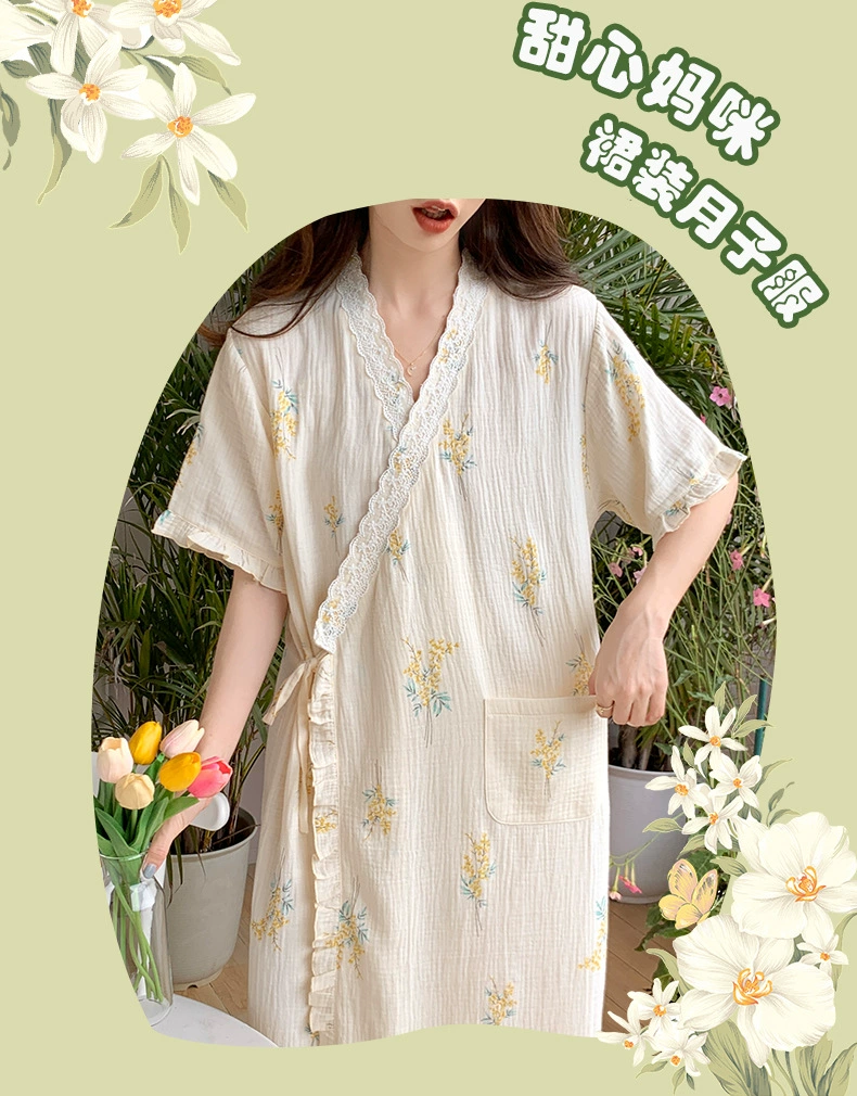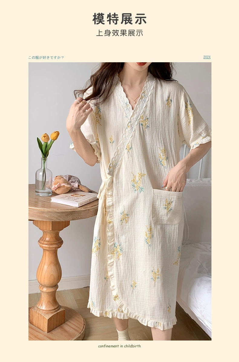 Ropa de maternidad con cuello en V bordado, camisones de lactancia, ropa de dormir de lactancia, nuevos vestidos sueltos de embarazo para primavera y otoño