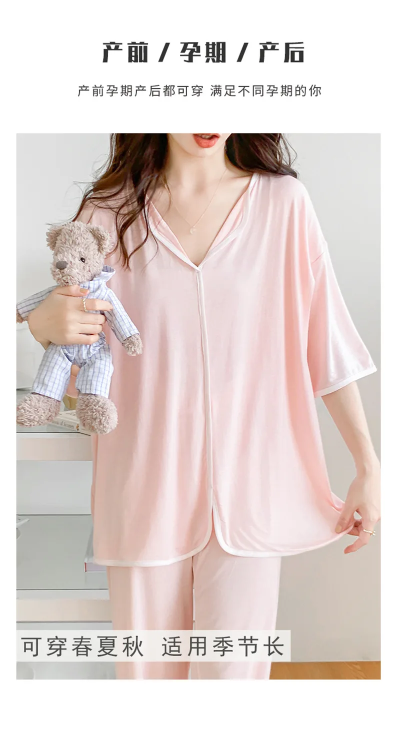 Comprar Ropa de maternidad fina para madres lactantes, pijamas de verano de Modal con cuello en V para mujeres embarazadas, camisón de alimentación de manga corta